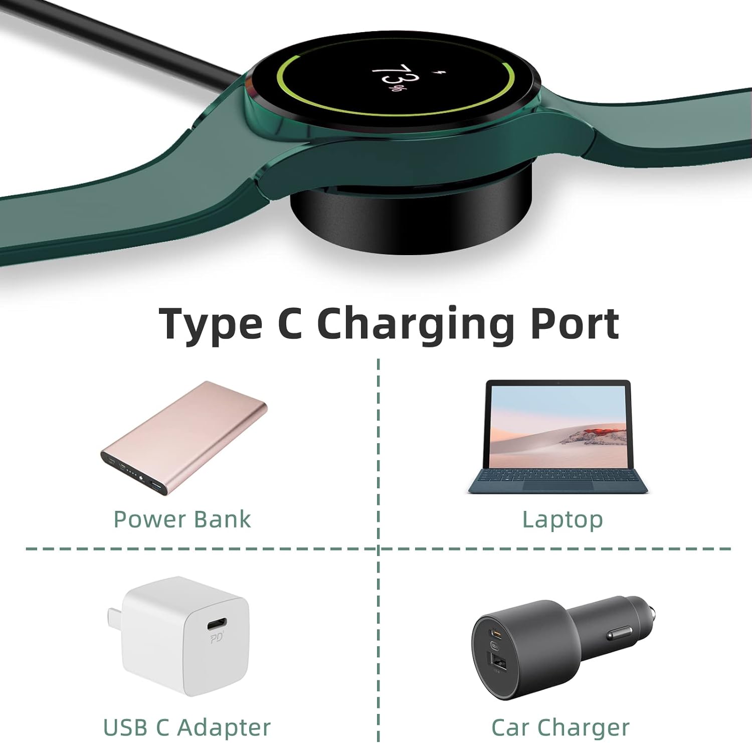 Tên sản phẩm: Cáp Sạc Đế Sạc Kim Loại cho Samsung Galaxy Watch 5/5Pro/6/6Classic/7 & Galaxy Watch Ultra Cổng USB Type C Hỗ trợ: Tất cả các dòng Galaxy Watch đều có thể sạc được
