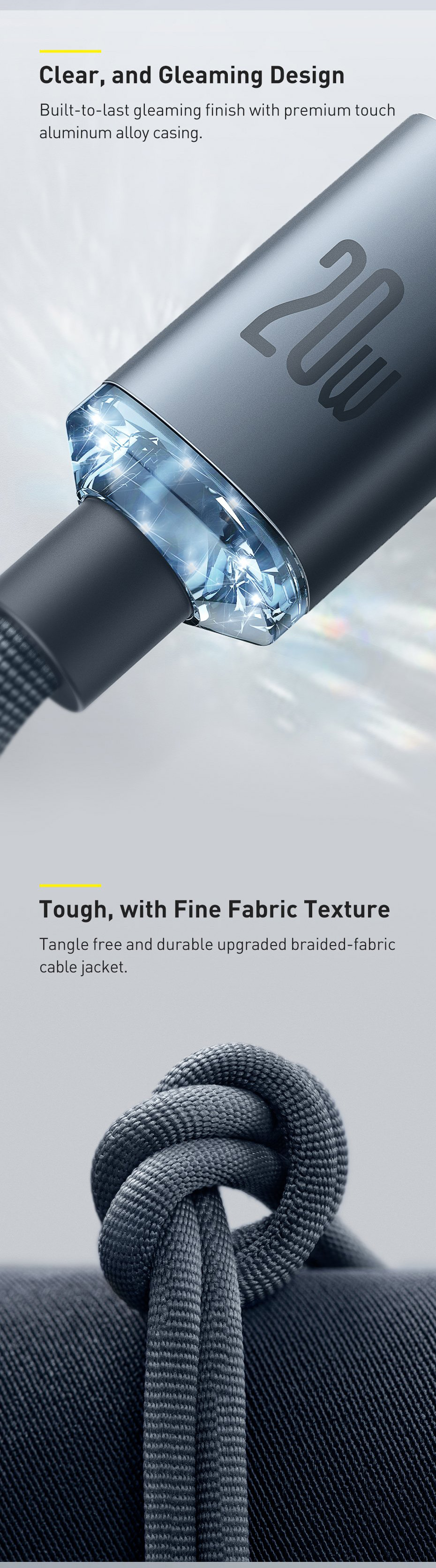 Mua tại TiktokCáp sạc nhanh và truyền dữ liệu Ba-se-us 20W, Ba-se-us Crystal Shine Series Fast Charging Data Cable