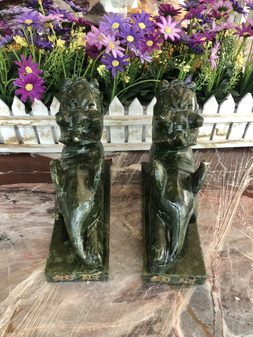 ✨Cặp Tỳ Hưu phong thủy đá ngọc serpentine có đế - Dài 17 cm
