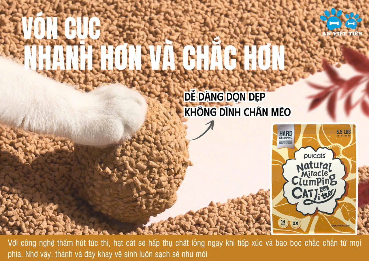 Khả năng thấm hút vượt trội + vón cục nhanh + hiệu suất nén cao + giữ mùi lâu = thời gian sử dụng GẤP ĐÔI so với cát vệ sinh thông thường