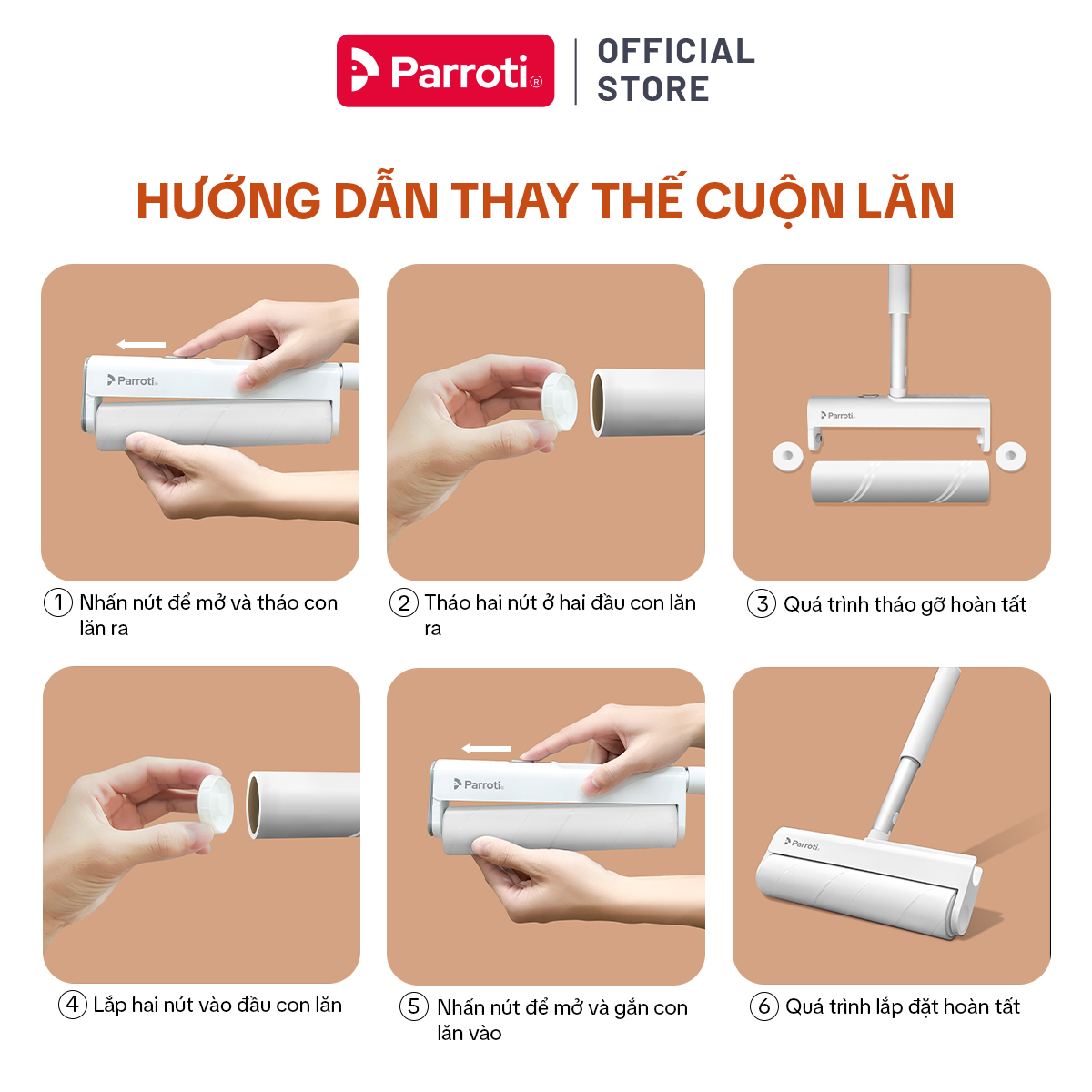 ✨Cây Lăn Bụi Ga Giường, Quần Áo, Thảm Nhà, Rèm Cửa, Cây Lăn Lông Chó Mèo, Đầu Lăn Có Thể Thay Thế - Parroti Roller RE01