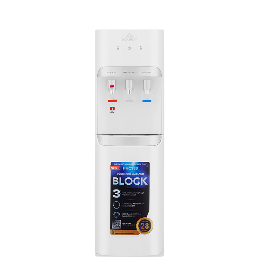 Cây nước nóng lạnh hút bình Hòa Phát HHC383 Mã sản phẩm: HHC383 - 3 chế độ nước tiện lợi vòi riêng biệt - Hệ thống lạnh dùng Gas R134a với Block hiệu suất cao giúp