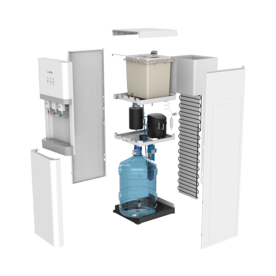Thiết kế Cây nước nóng lạnh Alaska có kiểu dáng thon gọn, màu trắng trang nhã, thích hợp đặt ở mọi không gian khác nhau, không tốn nhiều diện tích. Chất liệu Toàn bộ bầu khung