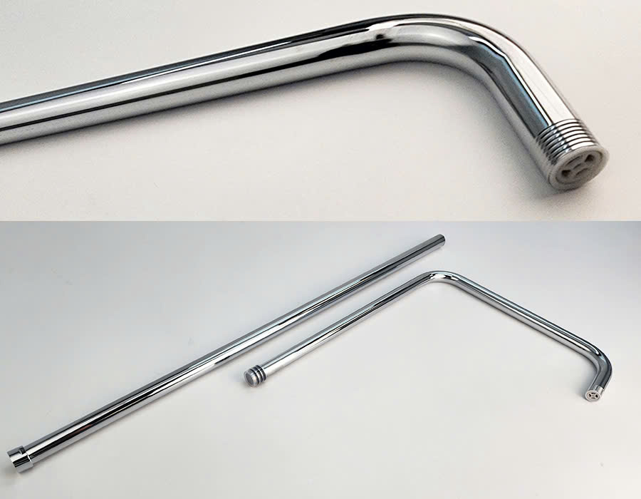 Ống dẫn cây sen hình chữ L với chiều dài 1230mm đường kính 25mm với chất liệu Inox 304 mạ Chrome sáng bóng.