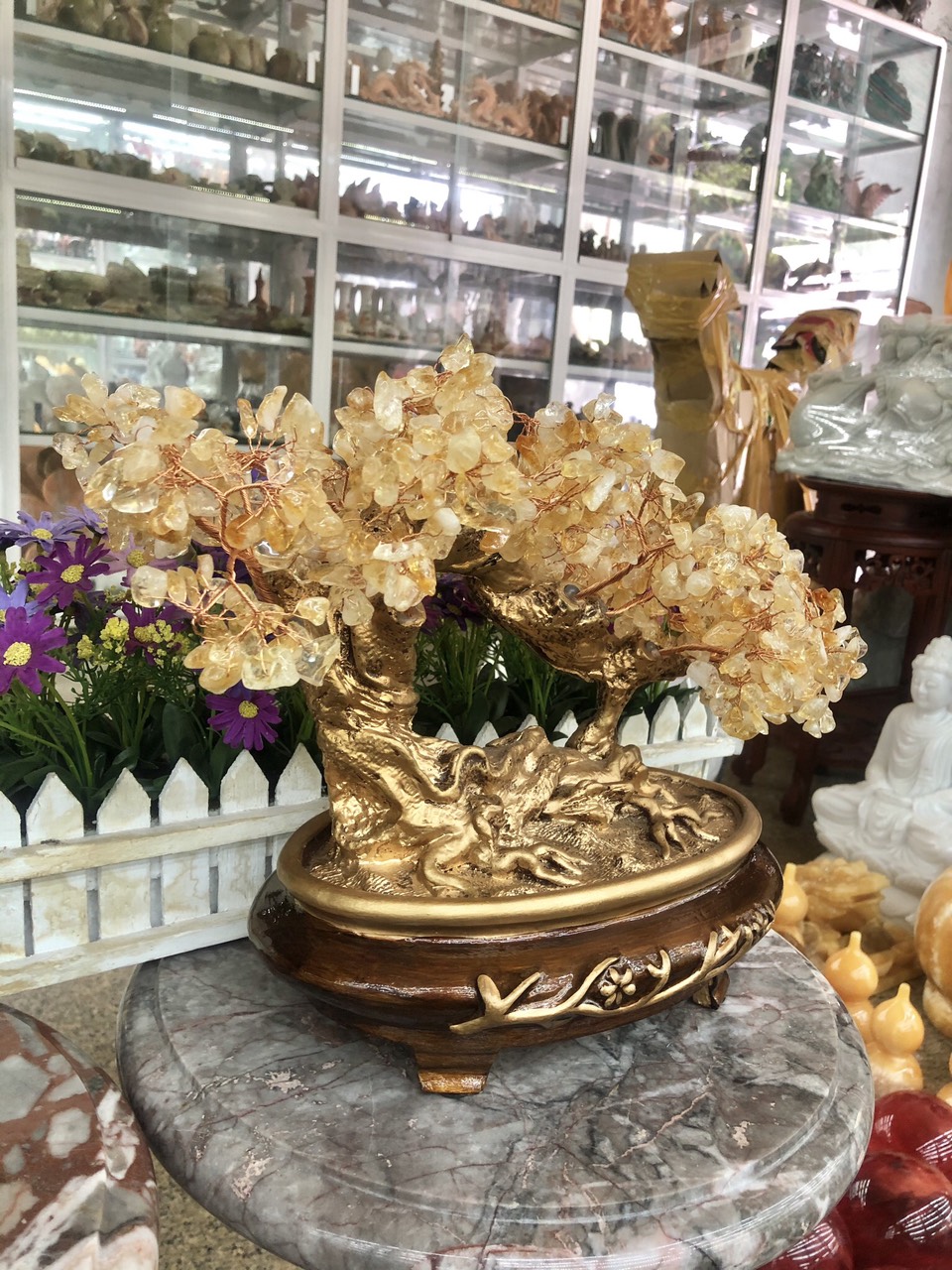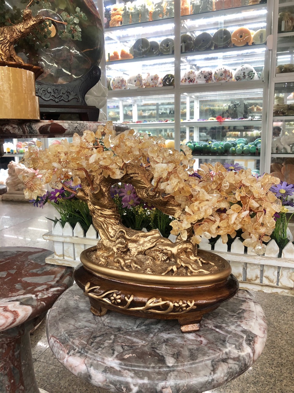 ✨Cây tài lộc bonsai phong thủy đá thạch anh vàng - Cao 30 cm
