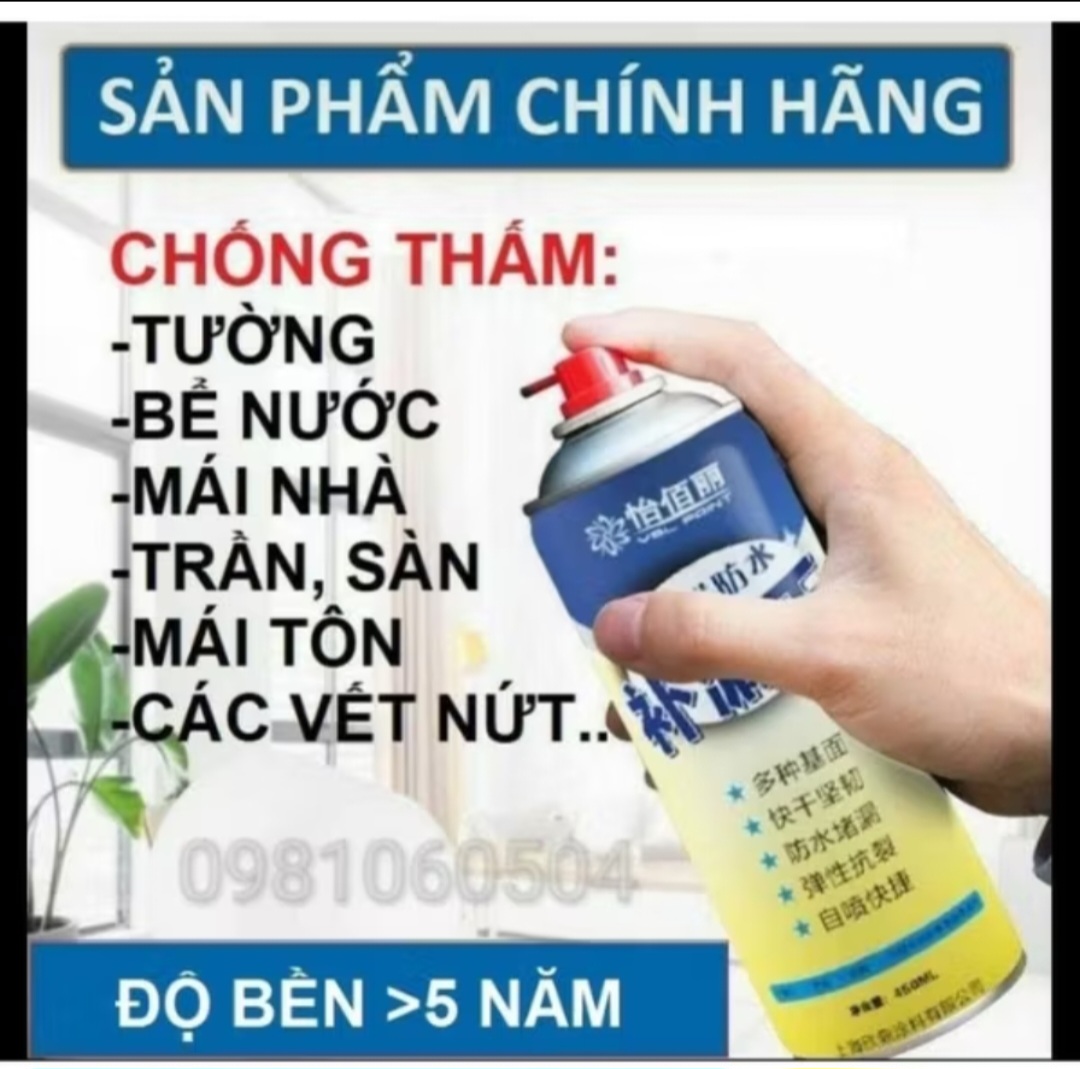 Sơn xịt chống thấm Siêu bền siêu rẻ siêu chất lượng với bộ bình xịt chống thấm đa năng siêu tiện dụng mẫu mới nhất chất lượng Tiết kiệm thời gian xử lý nhà cửa, trần mái, bể bơi, bể nước, bê tông bị thấm dột, chỉ 5-10s xịt vào chỗ thấm là xong- Sản phẩm được sản xuất theo dây chuyền công nghệ tiên tiến , đảm bảo an toàn và chất lượng.- Bình xịt chống thấm sử dụng được trên các vật liệu khác nhau như: nhựa, bê tông, đá Marble, tường xi măng, gạch men, mái ngói, tôn, vết nứt giữa hai vật liệu khác nhau…- Cực kỳ chắc, không thể rò rỉ, Chai xịt gắn đồ vật giải quyết Tên sản phẩm: Chai xịt chống thấm Dung tích: 450ml - Tiêu thụ sơn: 4m2/kg - Thời hạn sử dụng: 24 tháng từ ngày sản xuất! - Trọng lượng: 0.5kg - Ứng dụng: Phủ lên vết nứt tường nhà, đường ống dẫn nước, các hạng mục có khe hở nhỏ như lỗ đinh trên mái tôn... vết nứt trên thùng nhựa hoặc ca nước... ️ Bịt kín mọi KHE NỨT , chống thấm TƯỜNG, TRẦN, MÁI NHÀ , SÂN THƯỢNG, NHÀ VỆ SINH, MÁNG SÓI, ... ️ Bám dính trên tất cả các chất liệu: Bê tông, gạch men, đá hoa, sắt, tôn, nhựa,... ️ Giãn nở theo tất cả các vật liệu bám vào vá được trong tất cả các môi trường ẩm ướt, khô, nóng , lạnh, nước, dầu mỡ.... ️ Cam kết độ bền lên tới 15 năm. ️ An toàn, tiện lợi, dễ sử dụng. ️ Chống thấm ngược và chống thấm thuận tuyệt đối ️ Cực kỳ chắc, không thể rò rỉ, bình xịt chống dột chống thấm đa năng giải quyết tất cả các khó khăn cho gia đình bạn một cách nhanh chóng. ƯU ĐIỂM: Bịt kín mọi KHE NỨT , chống thấm TƯỜNG, TRẦN, MÁI NHÀ , SÂN THƯỢNG, NHÀ VỆ SINH, MÁNG SÓI, ... Bám dính trên tất cả các chất liệu: Bê tông, gạch men, đá hoa, sắt, tôn, nhựa,... Giãn nở theo tất cả các vật liệu bám vào vá được trong tất cả các môi trường ẩm ướt, khô, nóng , lạnh, nước, dầu mỡ.... Cam kết độ bền lên tới 15 năm. An toàn, tiện lợi, dễ sử dụng. Chống thấm ngược và chống thấm thuận tuyệt đối Cực kỳ chắc, không thể rò rỉ, bình xịt chống dột chống thấm đa năng giải quyết tất cả các khó khăn cho gia đình bạn một cách nhanh chóng. SỰ HÀI LÒNG CỦA CÁC BẠN CHÍNH LÀ THÀNH CÔNG CỦA CHÚNG TÔI HÃY ĐẾN VỚI CHÚNG TÔI VÌ LỢI ÍCH CỦA BẠN Nhận hàng nếu các anh em không hài lòng về sản phẩm liên hệ trực tiếp shop để được đổi trả vô điều kiện ( không thích sẽ được đổi trả ) Sản phẩm này là tài sản cá nhân được bán bởi Nhà Bán Hàng Cá Nhân và không thuộc đối tượng phải chịu thuế GTGT. Do đó hoá đơn VAT không được cung cấp trong trường hợp này.