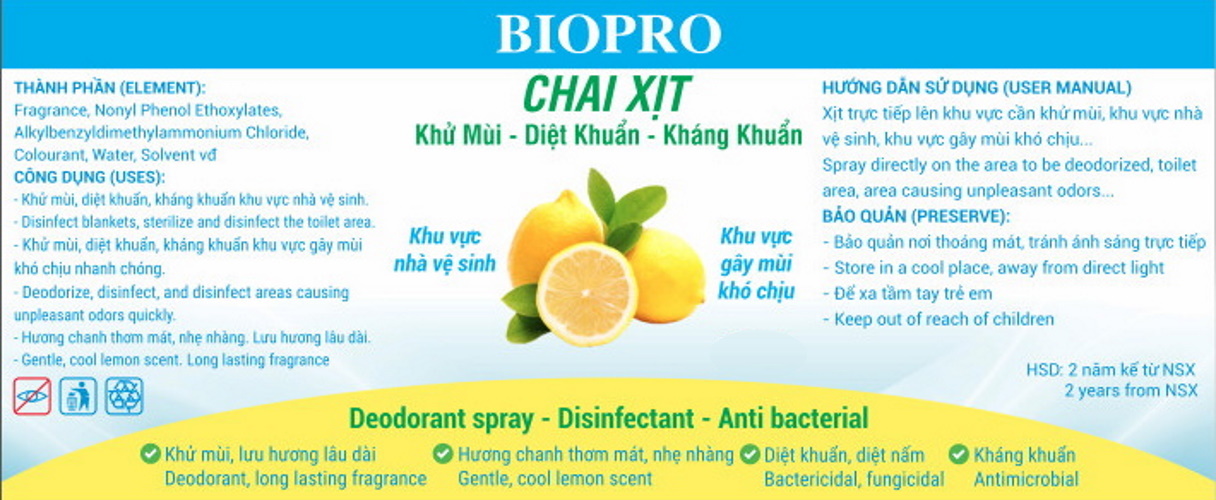 Mua tại TiktokChai xịt Biopro 500ml khử mùi diệt khuẩn kháng khuẩn Khu vực gây mùi khó chịu Khu vực nhà vệ sinh Hương chanh thơm mát => Shop xin cam kết Hạn sử dụng của sản phẩm vẫn còn xa (Sản phẩm chất lượng, Hàng luôn mới sản xuất)