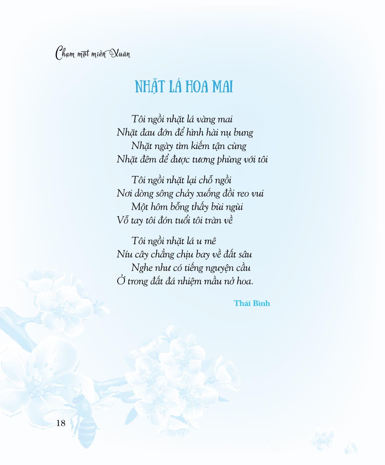 Cuộc thi thơ Lục bát Tết, lần đầu tiên do Saigon Books tổ chức, đặc biệt đáng nhớ vì diễn ra vào những ngày tháng Chạp, giáp Tết Đinh Dậu (2017). Khi những dòng người ngược xuôi, náo nhiệt trở lại quê nhà vui Tết thì Lục bát Tết cũng lần lượt đổ về hộp thư điện tử của chúng tôi. Lục bát, đương nhiên là phải có quy định niêm luật, nhưng vượt lên những niêm luật mang tính kỹ thuật, đó chính là QUY LUẬT TÌNH CẢM, là nhịp điệu thương nhớ gieo mầm, nảy nở theo mùa màng. Chọn 158 tác phẩm của 50 tác giả vào Chung khảo cuộc thi Lục bát Tết để in trong tập sách này, chúng tôi xem đây như là món quà nhỏ gửi đến những bạn đọc, bạn viết yêu thơ. Và, cao hơn là yêu quê hương mình còn lận đận một nắng hai sương, còn trĩu nặng toan lo trên những bờ vai gầy guộc. Chạm một miền Xuân là chạm vào một miền cảm xúc mênh mang của bao người.