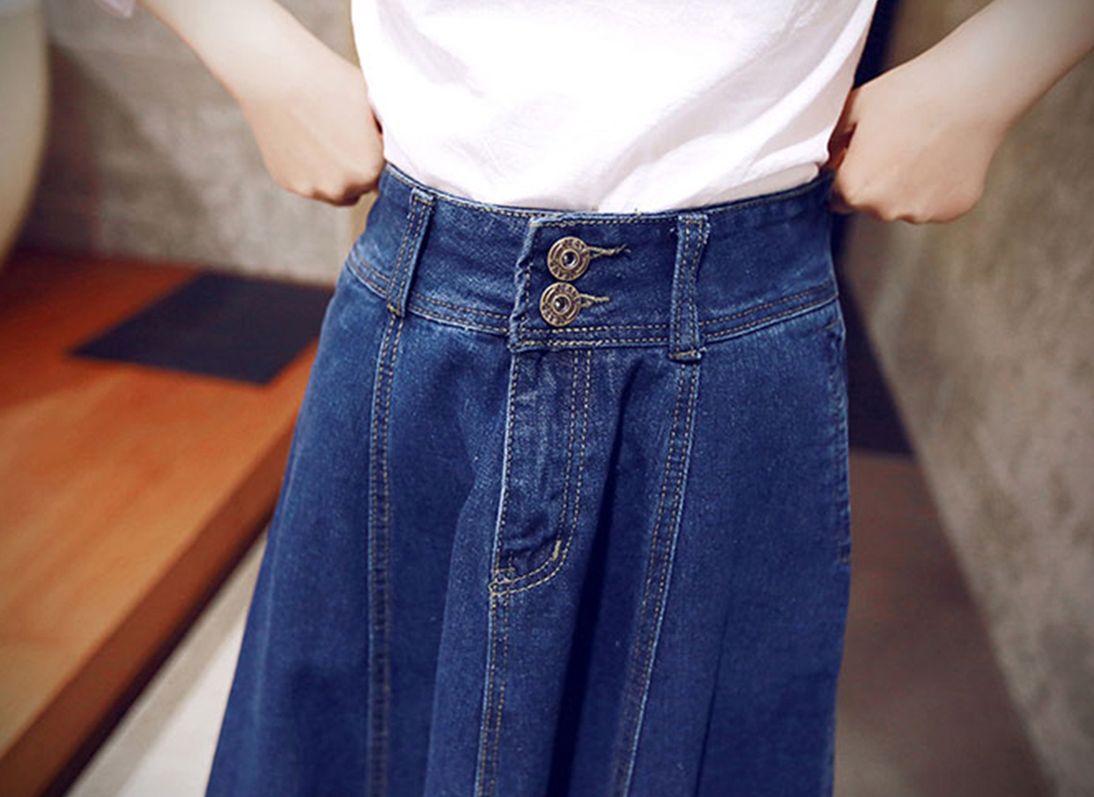 ✨Chân váy jean xòe dài 2 nút C011