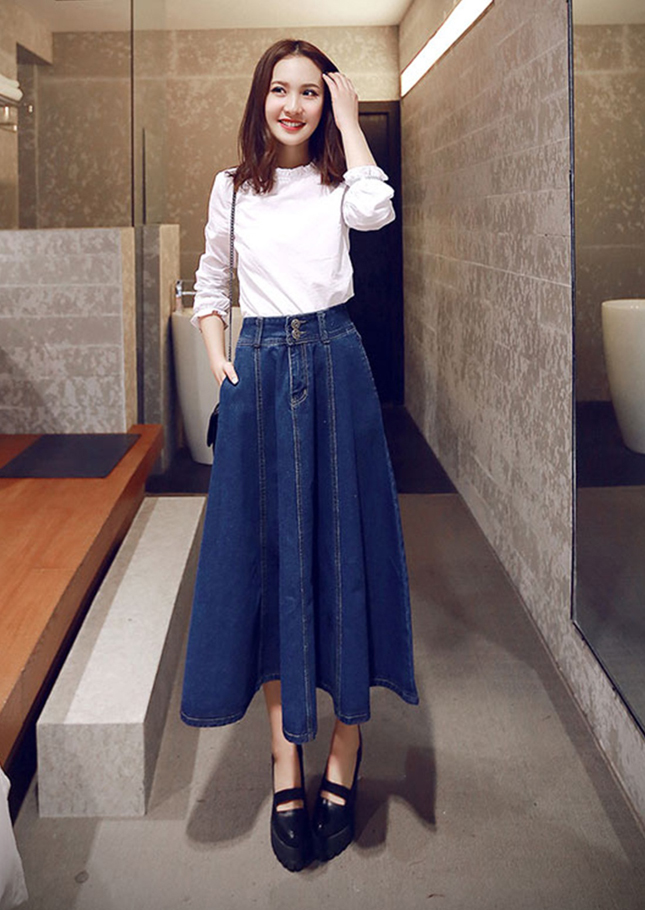 Chân váy Jean dài và Tip phối đồ cực đẹp