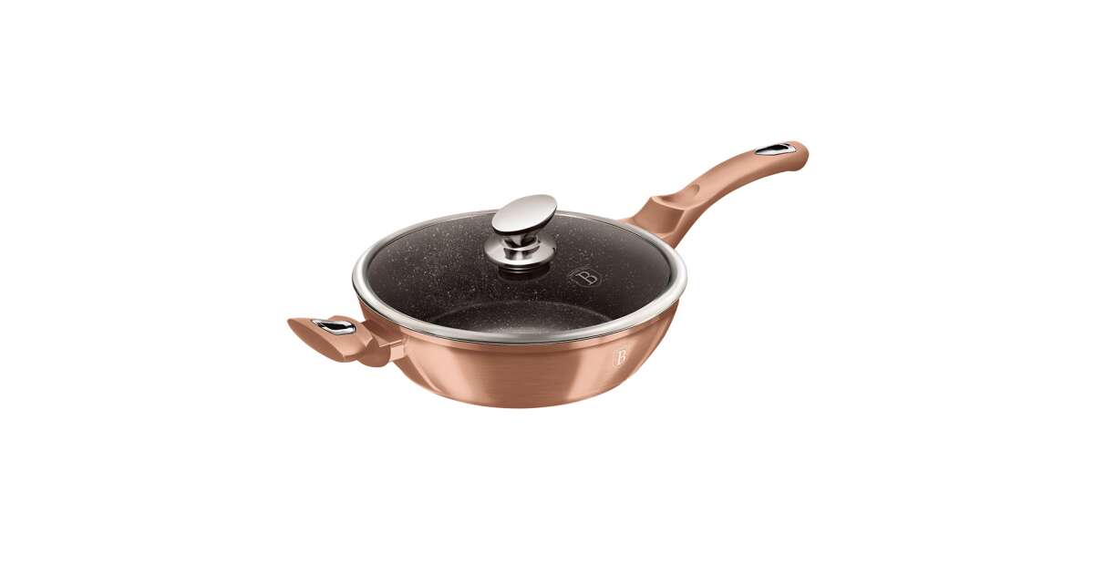 Chiếc chảo thanh lịch này từ Bộ sưu tập Burgundy của chúng tôi được làm bằng nhôm rèn với lớp phủ đá cẩm thạch chống dính. Đáy cảm ứng, được tạo ra với sự hỗ