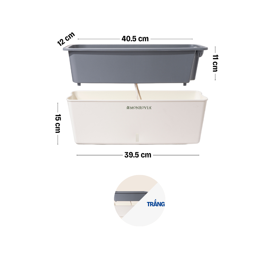 DOCNEEM XIN GIỚI THIỆU ĐẾN BẠN MÃ SẢN PHẨM - CHẬU TRỒNG CÂY TỰ TƯỚI THÔNG MINH HÌNH CHỮ NHẬT MONROVIA SC06 _ Chất liệu: PP cao cấp _ Cấu tạo: Chậu bao gồm hai
