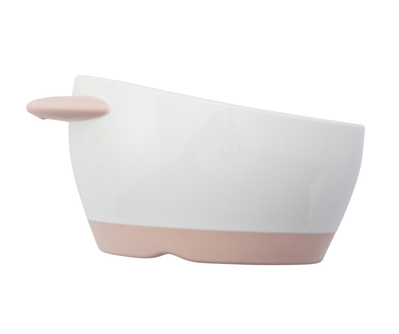 - Độ nghiêng của thành chén giúp bé dễ xúc thức ăn, không bị gạt đổ thức ăn ra ngoài