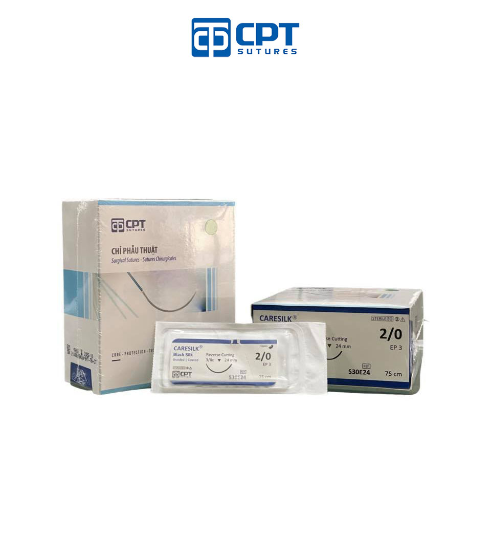 Mua tại TiktokChỉ phẫu thuật không tiêu CPT Caresilk Silk: size cỡ chỉ: 2/0 USP, dài 75 cm, kim tam giác 3/8c, dài 24 mm, mã hàng: S30E24. Quy cách đóng gói: 24 tép. THÀNH PHẦN:
