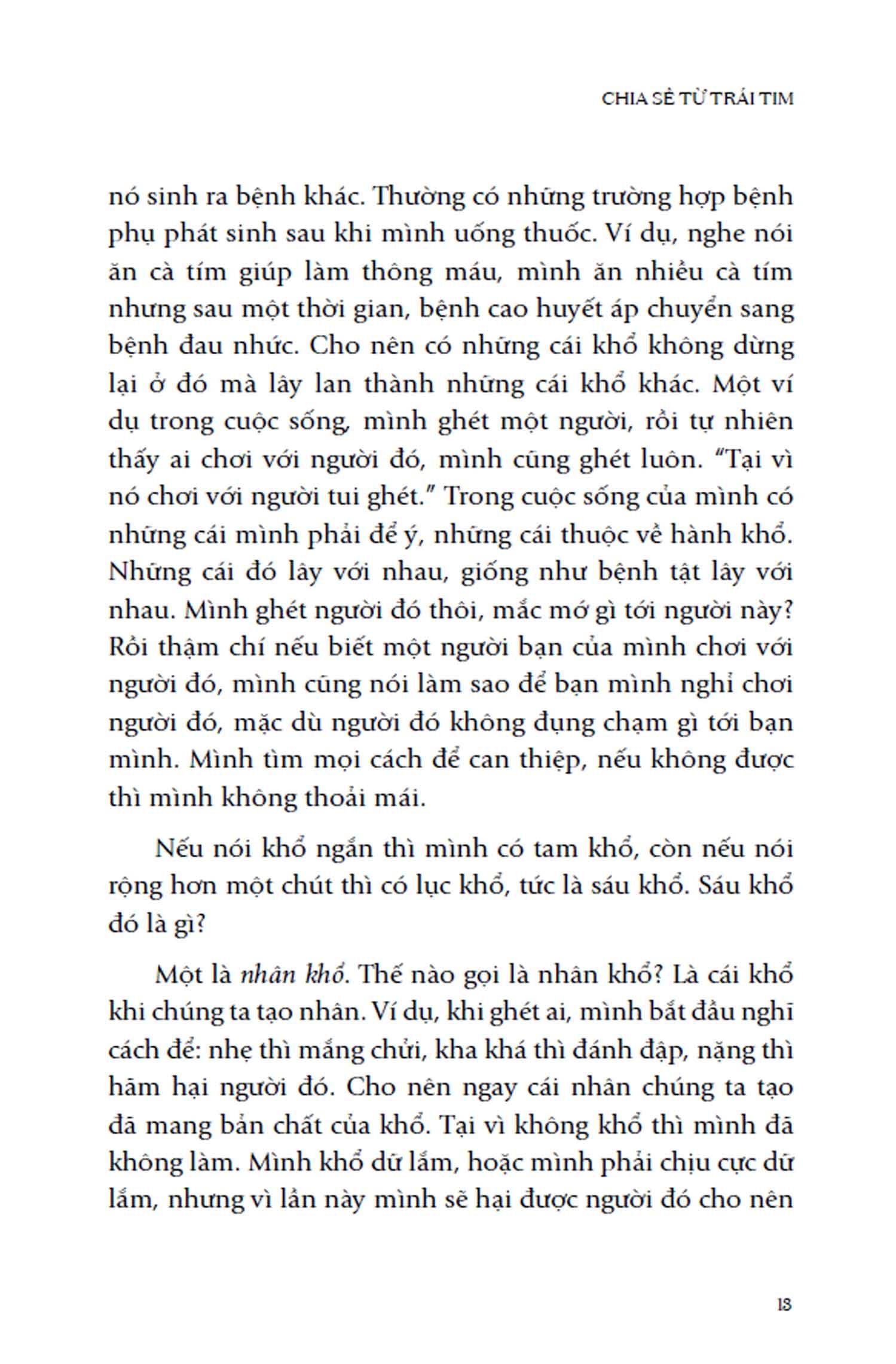 Chia sẻ từ trái tim là một tuyển tập từ hàng trăm bài pháp thoại của Sa Môn Thích Pháp Hòa, được sắp xếp theo các chủ đề nhằm hệ thống lại những khái niệm, tư tưởng căn bản của đạo Phật qua lời giảng gần gũi của thầy, để mỗi người chúng ta có thể đưa vào áp dụng trong chính cuộc sống hằng ngày của m.ình.