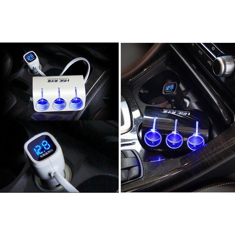 ✨Chia tẩu Ô tô 1 ra 3 công suất 120W có cổng sạc USB và báo điện áp
