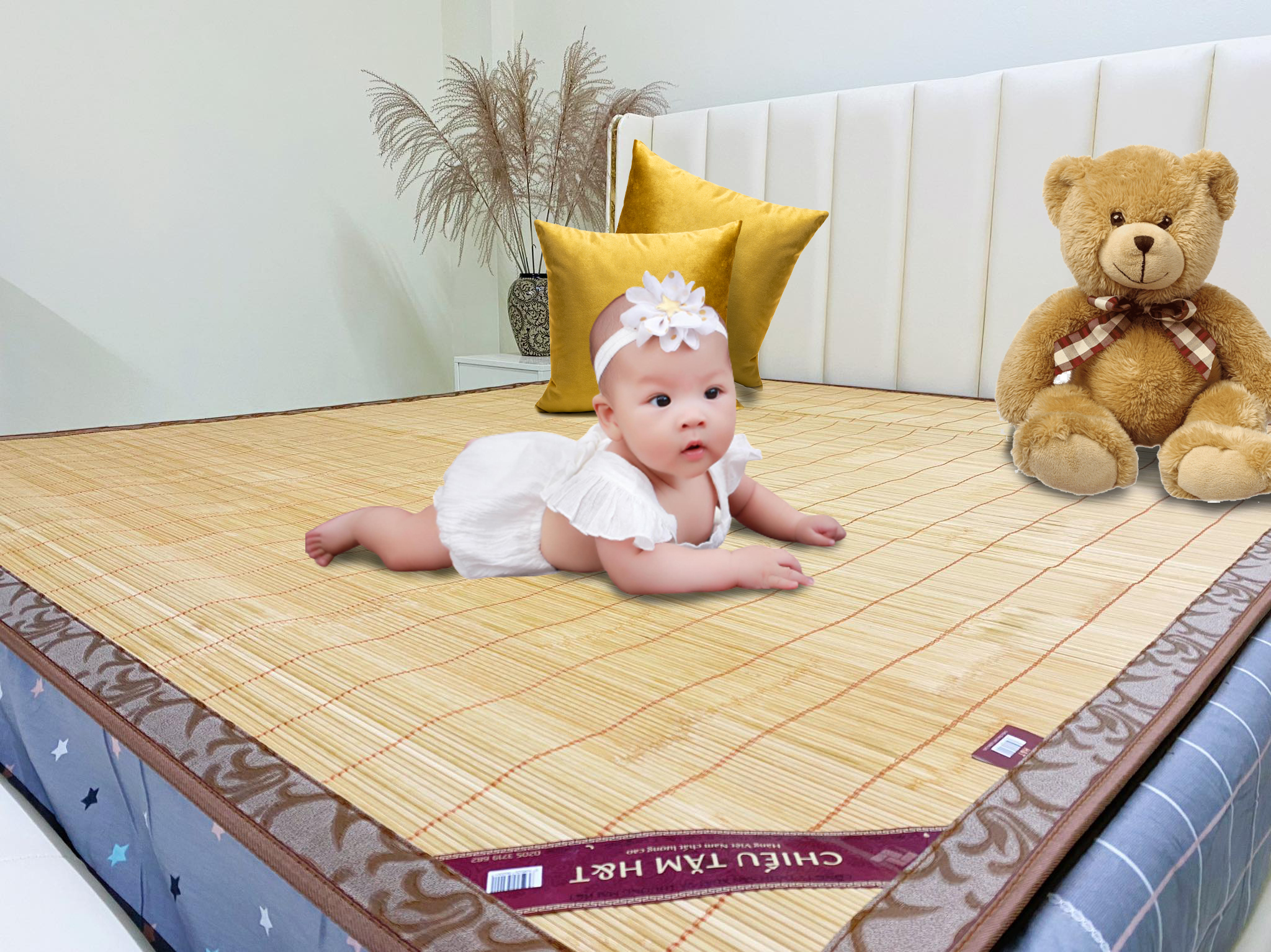Dùng khăn ẩm lau bề mặt chiếu và phơi nơi râm mát thoáng gió. Không nên ngâm giặt chiếu.