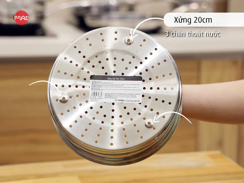 Xửng bằng iMat inox 304, nhiều phân loại đường kính khác nhau. Dùng được với mọi nồi, chảo có cùng kích thước
