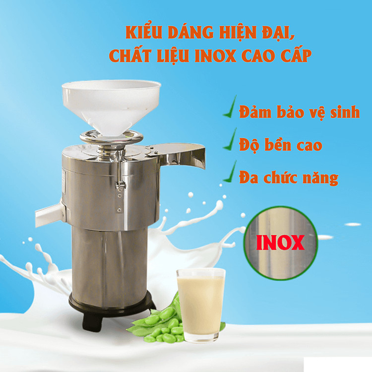 Hiện nay, kinh doanh sữa đậu nành, đậu hũ hay tào phớ đang được nhiều người quan tâm, vì vốn đầu tư ít mà tiềm năng sinh lời cao. Để bắt đầu công việc này, chắc chắn quý vị và các bạn sẽ cần thiết bị xay sữa hạt hỗ trợ. Hiểu được nhu cầu của thị trường, chúng tôi đã cung cấp tới người dùng sản phẩm máy làm sữa đậu nành 3A800W. Đây là thiết bị xay đậu nành tối ưu trên thị trường, với khả năng lọc tách bã, thu nước cốt tối đa, năng suất đạt tới 45 - 50 Kg/h. Lý do nên sở hữu máy làm sữa đậu nành 3A800W ngay hôm nay: Xay đa dạng các loại nguyên liệu Ngoài xay đậu nành, máy làm sữa đậu nành 3A800W còn xay các loại nguyên liệu khác như đậu đen, đậu đỏ, đậu xanh, ngô hạt, gạo, nế Nhờ đó người dùng có thể đa dạng thực đơn sữa hạt, đáp ứng hoàn hảo nhu cầu của khách hàng thường thức. Năng suất cao vượt trội Máy làm sữa đậu nành 3A800W có năng suất xay sữa đậu đạt 45 - 50Kg/h. Với năng suất này, người dùng có thể sử dụng máy cho quán giải khát, tiệm đồ ăn vặt hoặc dùng trong bếp ăn công nghiệp tại nhà máy, trường học, bệnh viện. Ngoài ra các cơ sở làm đậu hũ cũng có thể sử dụng máy để sản xuất. Tính năng lọc tách bã hoàn hảo Không còn phải vất vả với công đoạn lọc tách bã như trước, với máy làm sữa đậu nành 3A800W của chúng tôi công đoạn lọc tách bã chỉ diễn ra một lần duy nhất, trong thời gian ngắn. Nhờ đó mà công việc làm sữa hạt, làm đậu đã giảm bớt được sự vất vả, nâng cao năng suất và chất lượng nhiều lần. Thiết kế hiện đại, tối ưu