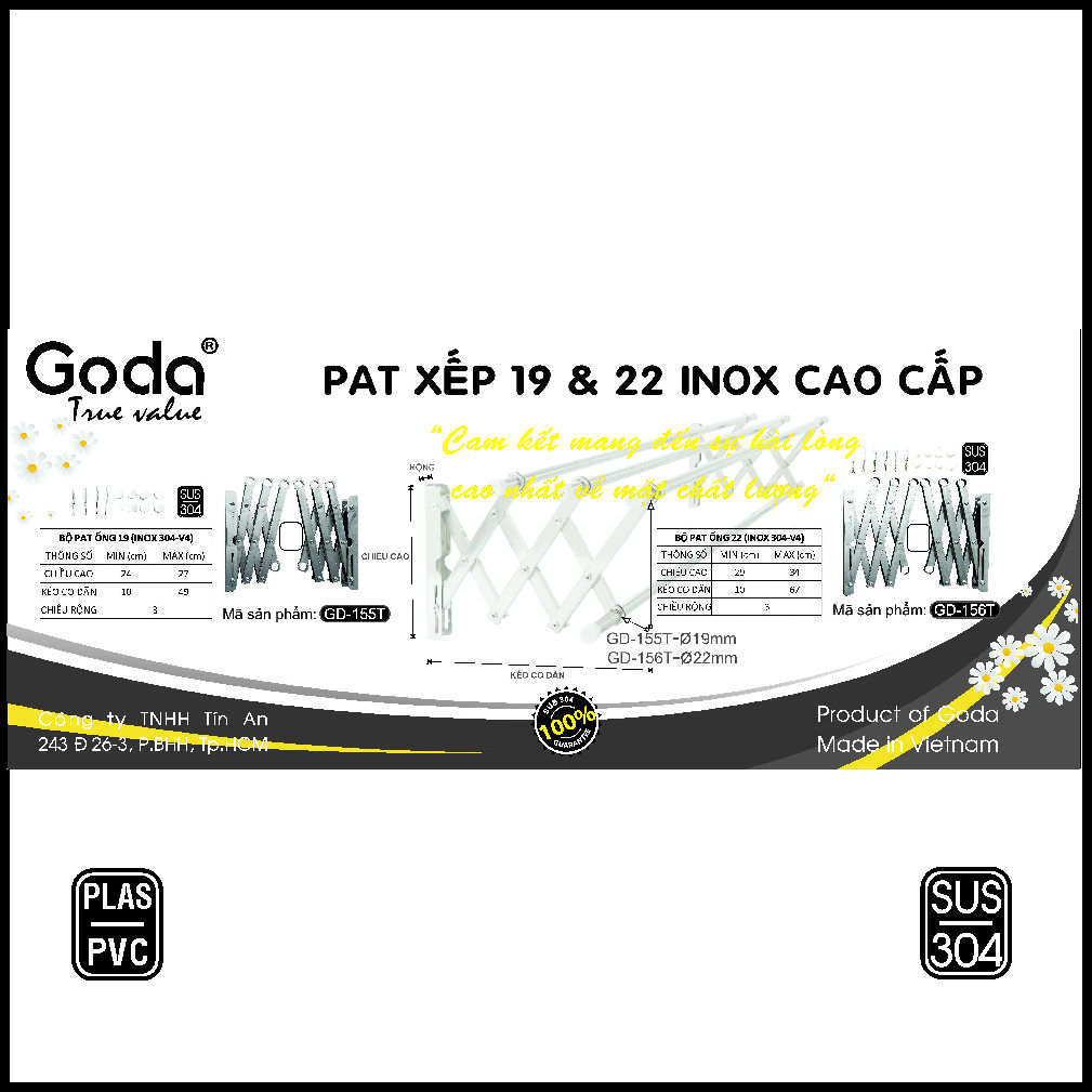 Bộ Pat ống 22 (inox 304-V4): khi bung ra rộng 67cm, đóng lại 10cm, chiều cao 34cm