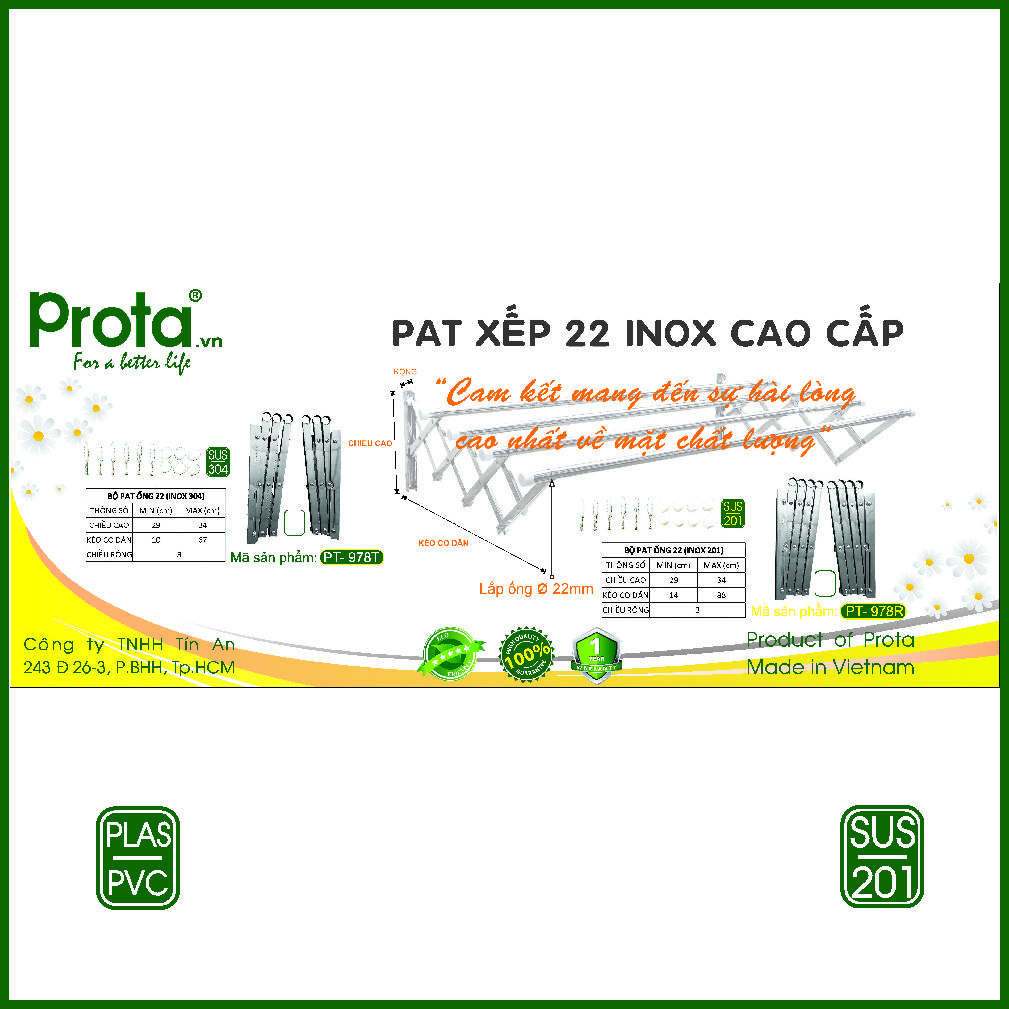 Sản phẩm: Thanh treo tường inox đa năng không cần khoan tường Prota ống 19mm CÁC ĐIỂM NỔI BẬT -Thanh treo tường inox đa năng không cần khoan tường ống 19mm Prota được làm bằng