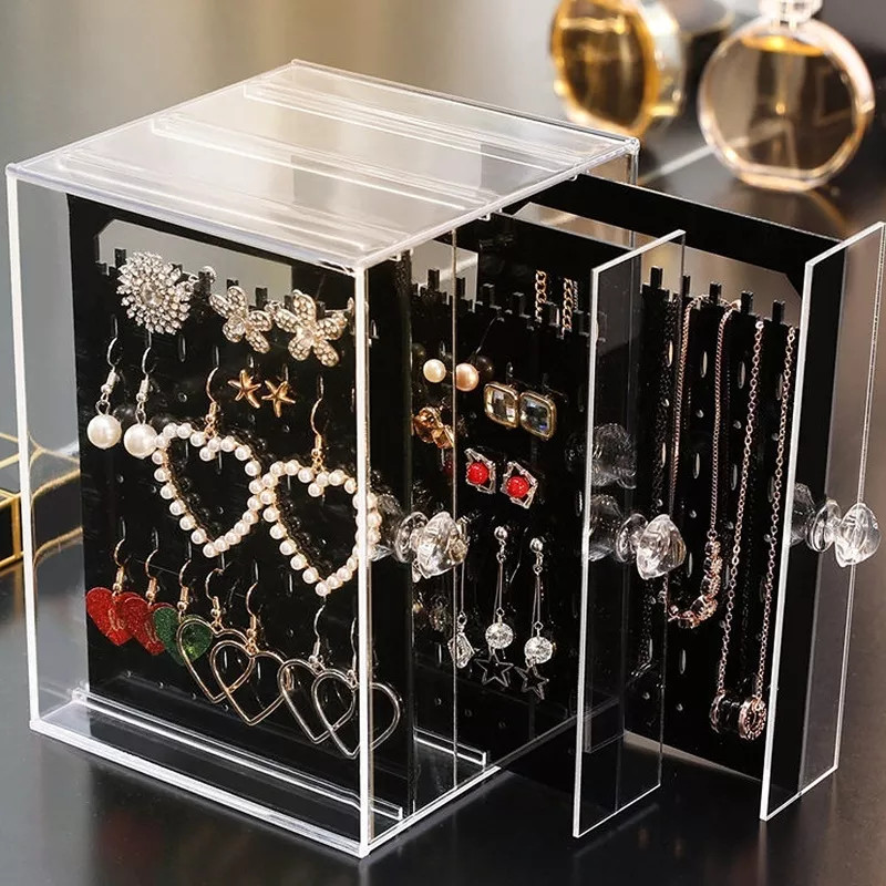 Hộp đựng trang sức, khuyên tai mica trong suốt dễ quan sát