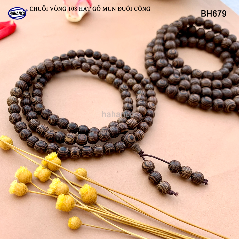 ✨Chuỗi Tràng 108 hạt gỗ Mun Đuôi Công vân gỗ siêu đẹp - An Yên - Thịnh Vượng (BH679) chất gỗ họa tiết mộc mạc, đem lại phong cách độc lạ