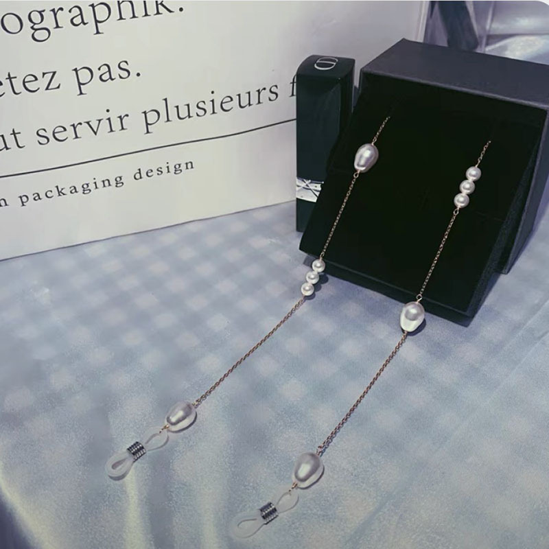 ✨Chuỗi xích đeo mắt kính chống rơi rớt hạt châu bất đối xứng thời trang nam và nữ cá tính