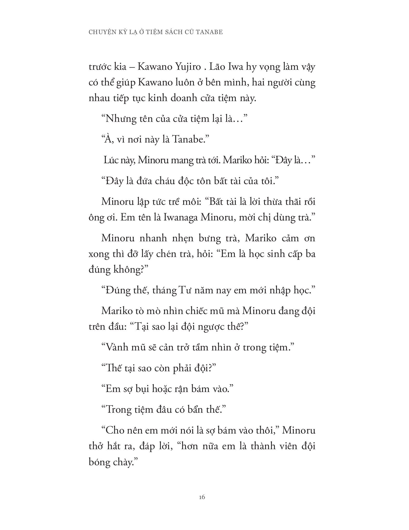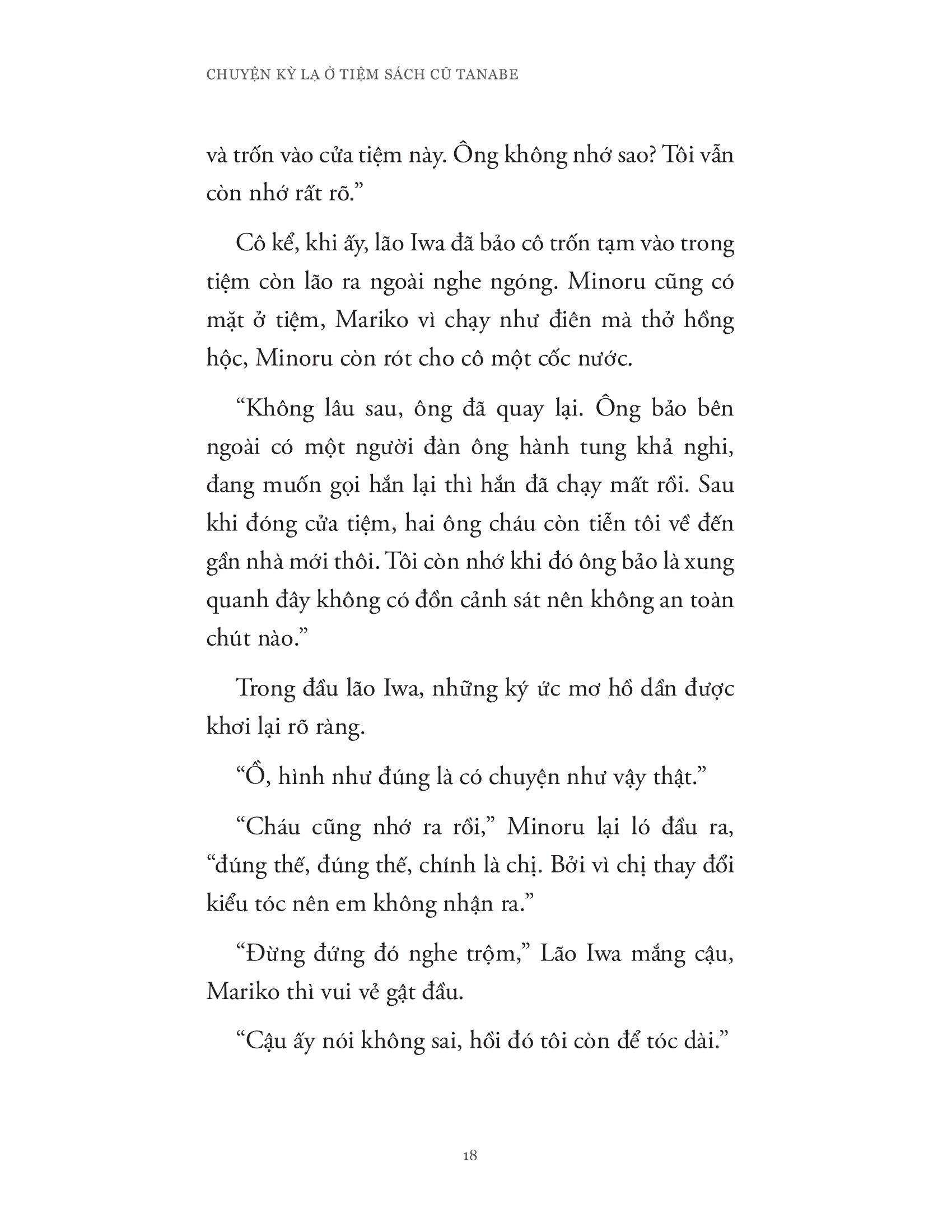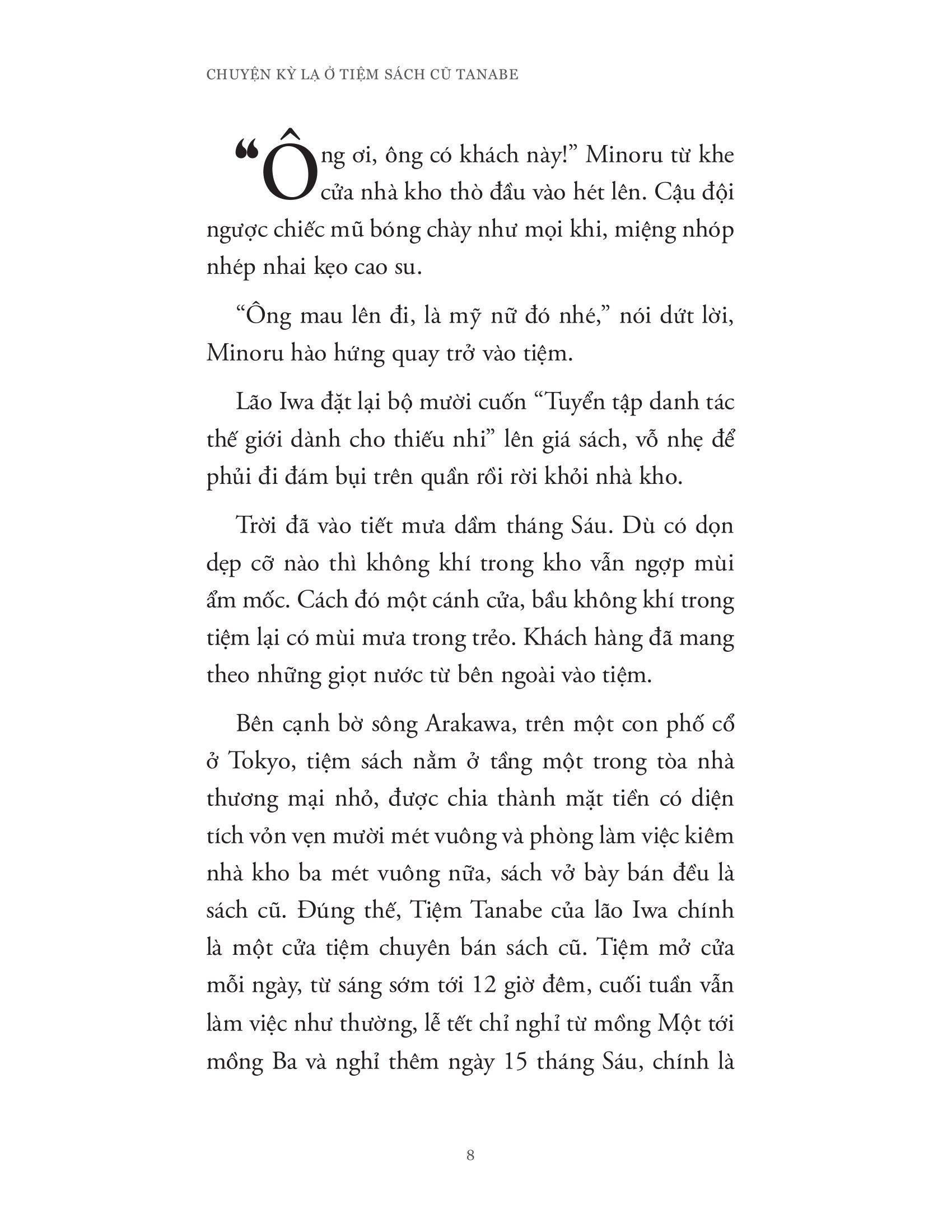 Cuốn sách là một tuyển tập những câu truyện “trinh thám” ngắn liên quan đến hành trình phá án hay đi tìm câu trả lời cho những bí ẩn hay “vụ án” xuất phát hoặc liên quan đến tiệm sách Tanabe nơi lão Iwa làm chủ. Trong suốt những hành trình nhỏ ấy, cả lão Iwa và đứa cháu Minoru của m.ình đã cho độc giả thấy lần lượt từng lớp lang bản chất con người (cả tiêu cực lẫn tích cực) cũng như mối quan hệ và tình cảm gia đình được thể hiện khéo léo qua những tương tác của hai ông cháu.