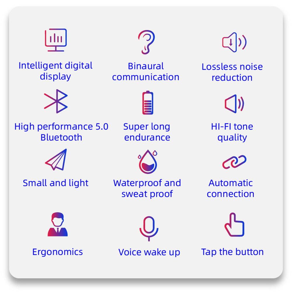 Features: Adopt DSP anti-interference chip and BT5.0 chip, fast and stable transmission, low power consumption. High-quality eight-core 13mm speaker unit, good sound quality, comfortable audio experience. CVC intelligent noise reduction technology can automatically reduct environmental