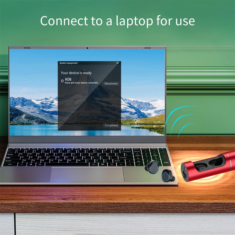 Tai nghe Bluetooth TWS K-08 Tai nghe nút tai không dây nâng cấp với đèn pin Màn hình LED điều khiển cảm ứng với nguồn điện di động