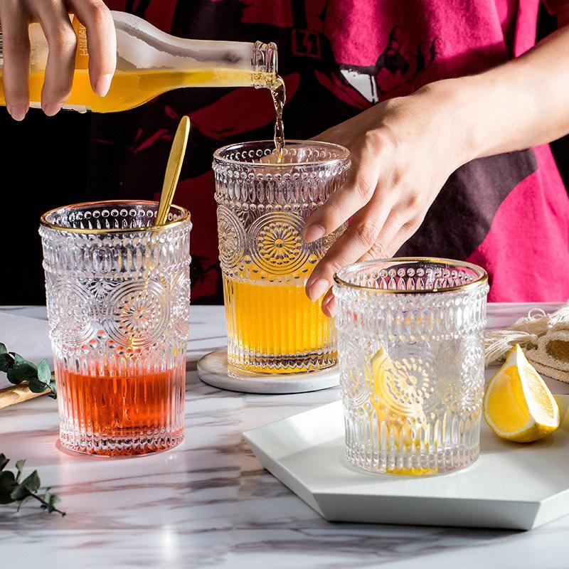 Ly thủy tinh họa tiết cổ điển châu Âu, cốc thủy tinh phong cách Retro sang trọng
