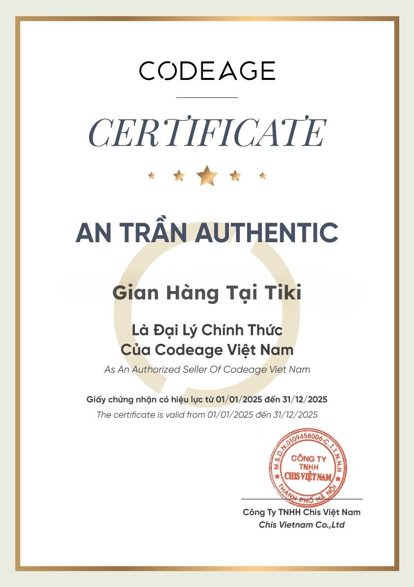 Mua tại TiktokGiới thiệu về thương hiệu Codeage Codeage là thương hiệu nổi tiếng đến từ Mỹ, chuyên cung cấp các sản phẩm chăm sóc sức khỏe và bổ sung dinh dưỡng chất lượng cao. Thương hiệu luôn chú trọng đến việc nghiên cứu và phát triển các sản phẩm dinh dưỡng dựa trên khoa học, kết hợp với nguyên liệu tự nhiên. Các sản phẩm của Codeage được sản xuất tại các cơ sở đạt chuẩn cGMP, đảm bảo chất lượng và sự an tâm cho người tiêu dùng. An Trần Authentic được chứng nhận đại lý chính thức tại Việt Nam Thông số sản phẩm