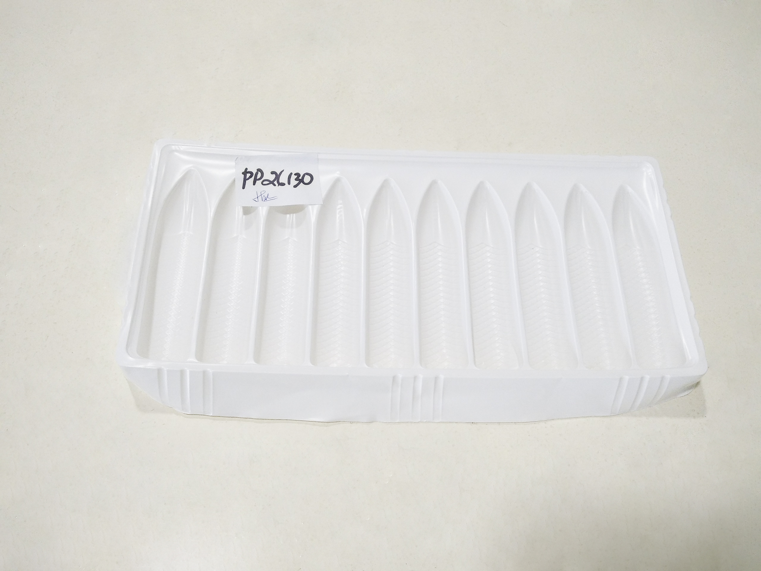 Khay nhựa PP đựng tôm được chia ra thành từng ngăn riêng biệt (thường 10 ngăn) với kích thước vừa đủ để đảm bảo sao cho giữ được hình dáng và chất lượng của con tôm trong quá trình bảo quản tủ đông trong siêu thị hay vận chuyển trên cont để xuất khẩu đường thủy hay đường hàng không.
