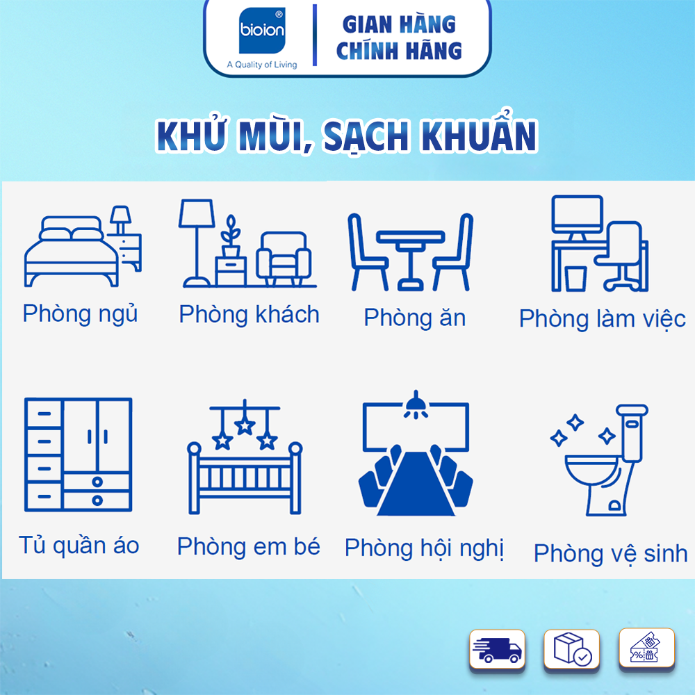 Công nghệ sinh học Nhật Bản. Tác dụng trong 30 giây. Hiệu quả loại bỏ 99,9% vi trùng trong không khí được chứng nhận bởi Viện nghiên cứu Osaka Nhật Bản. Khử sạch mùi khó