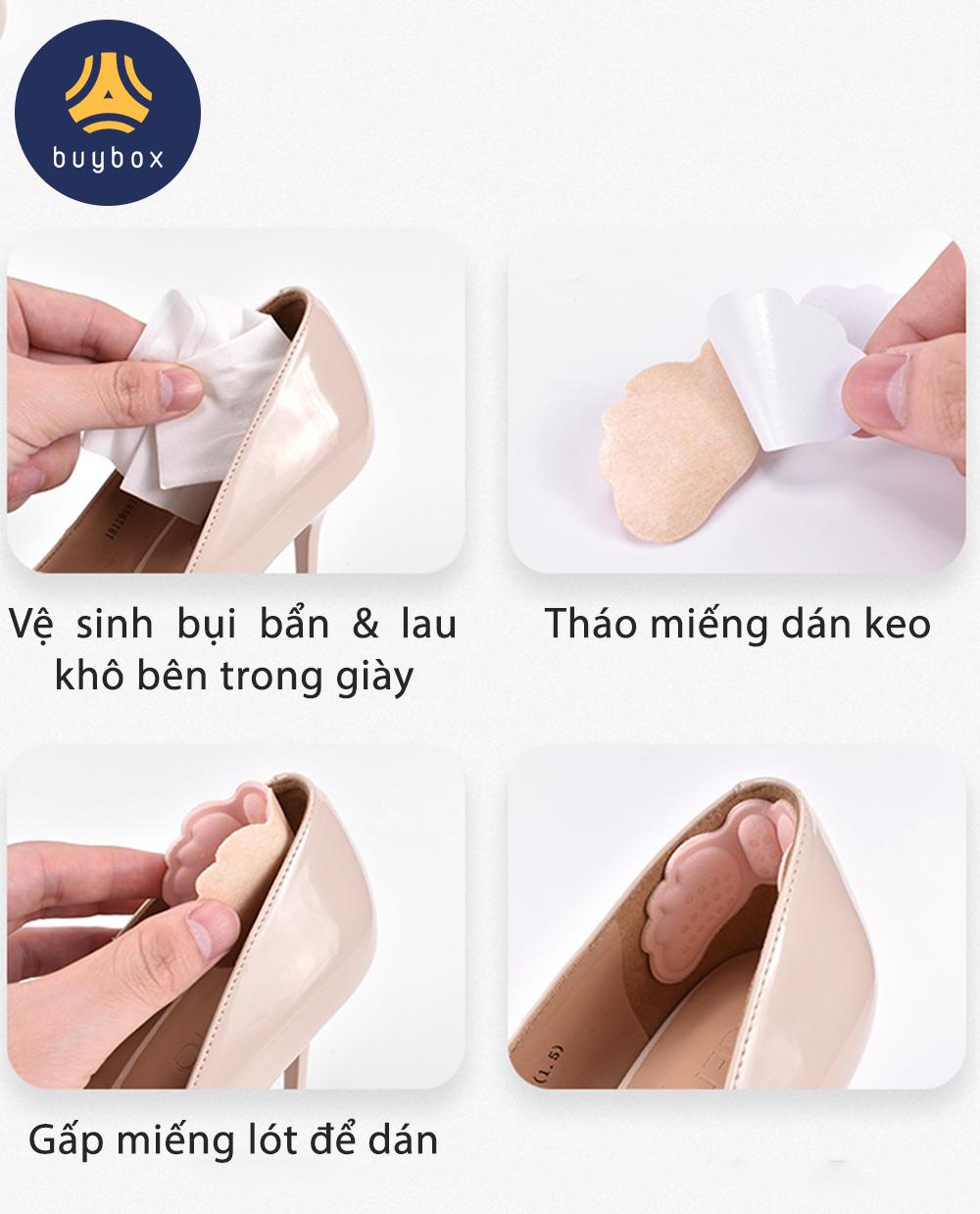 - Đặt lót 4D và dán cố định vào giày Lưu ý: Sản phẩm mang thương hiệu buybox có bao bì in logo và hướng dẫn sử dụng chi tiết đi kèm.