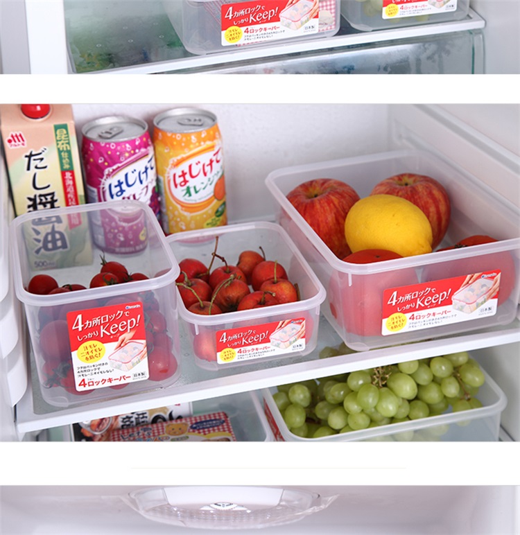 Hộp được làm từ nhựa trong suốt, dễ dàng quan sát tình trạng thực phẩm ở bên trong.