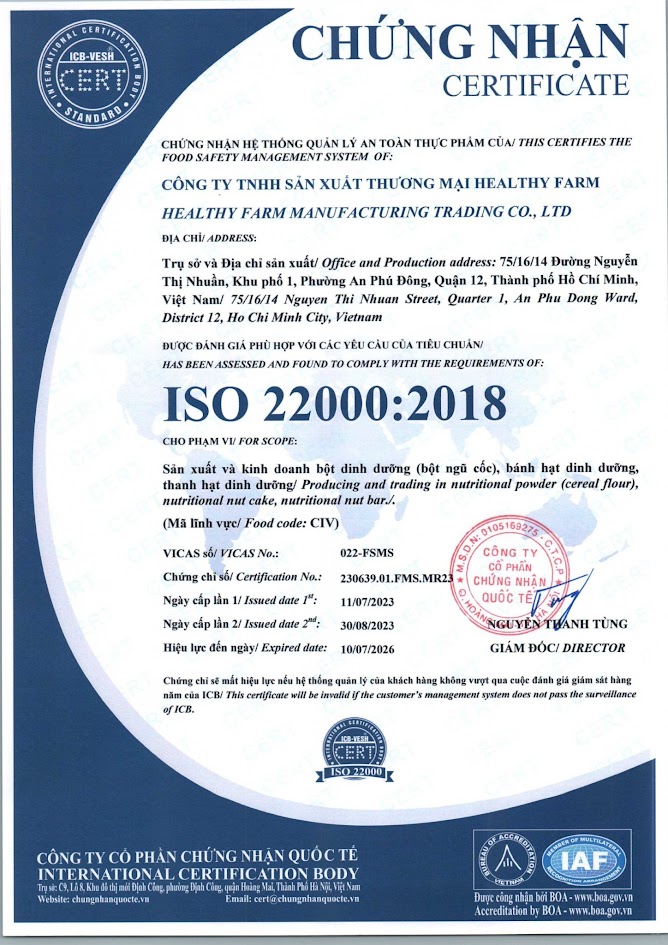 - Sản xuất tại Công Ty TNHH Sản Xuất Thương Mại Healthy Farm