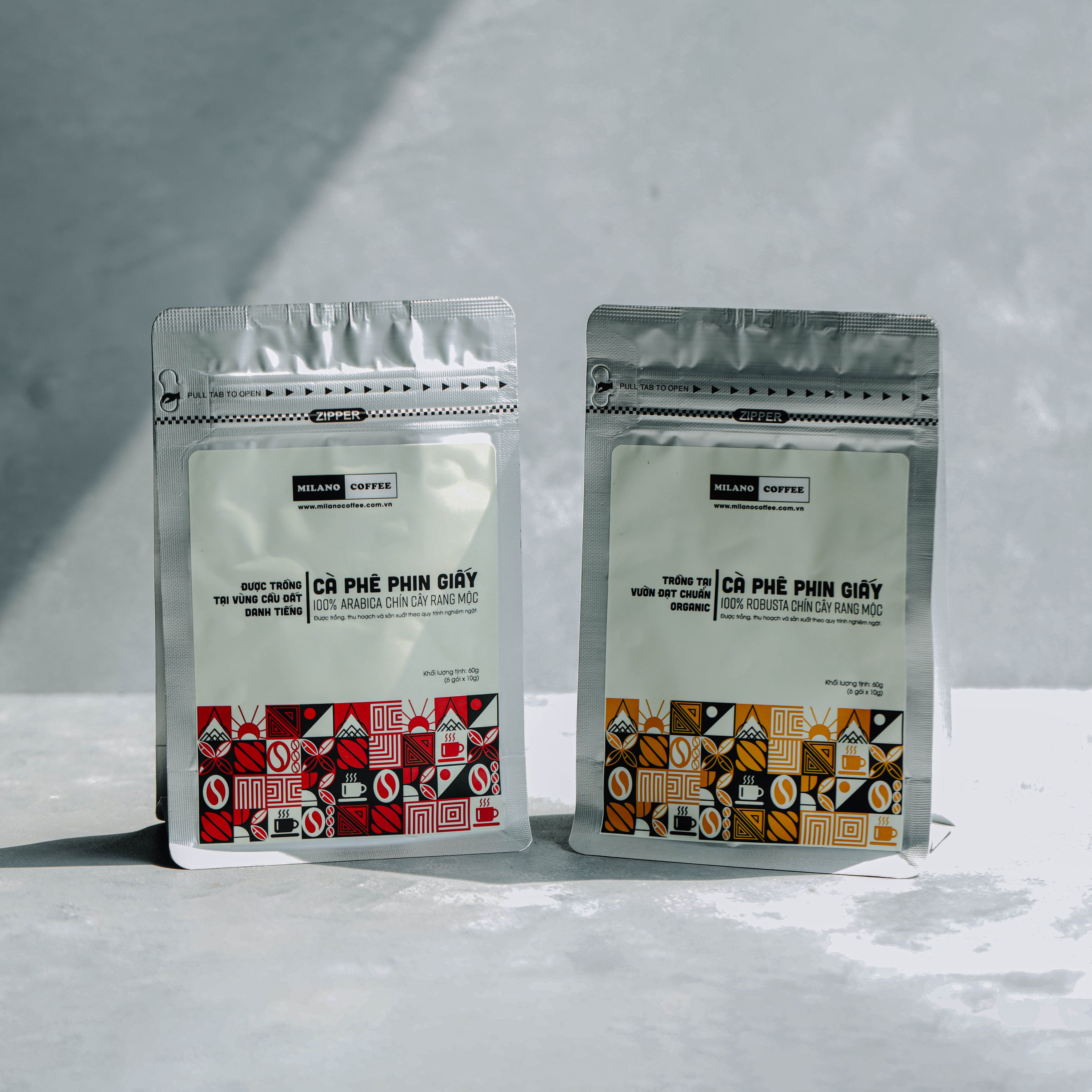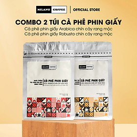 Combo 2 túi cà phê phin giấy Robusta & Arabica chính cây rang mộc Milano Coffee
