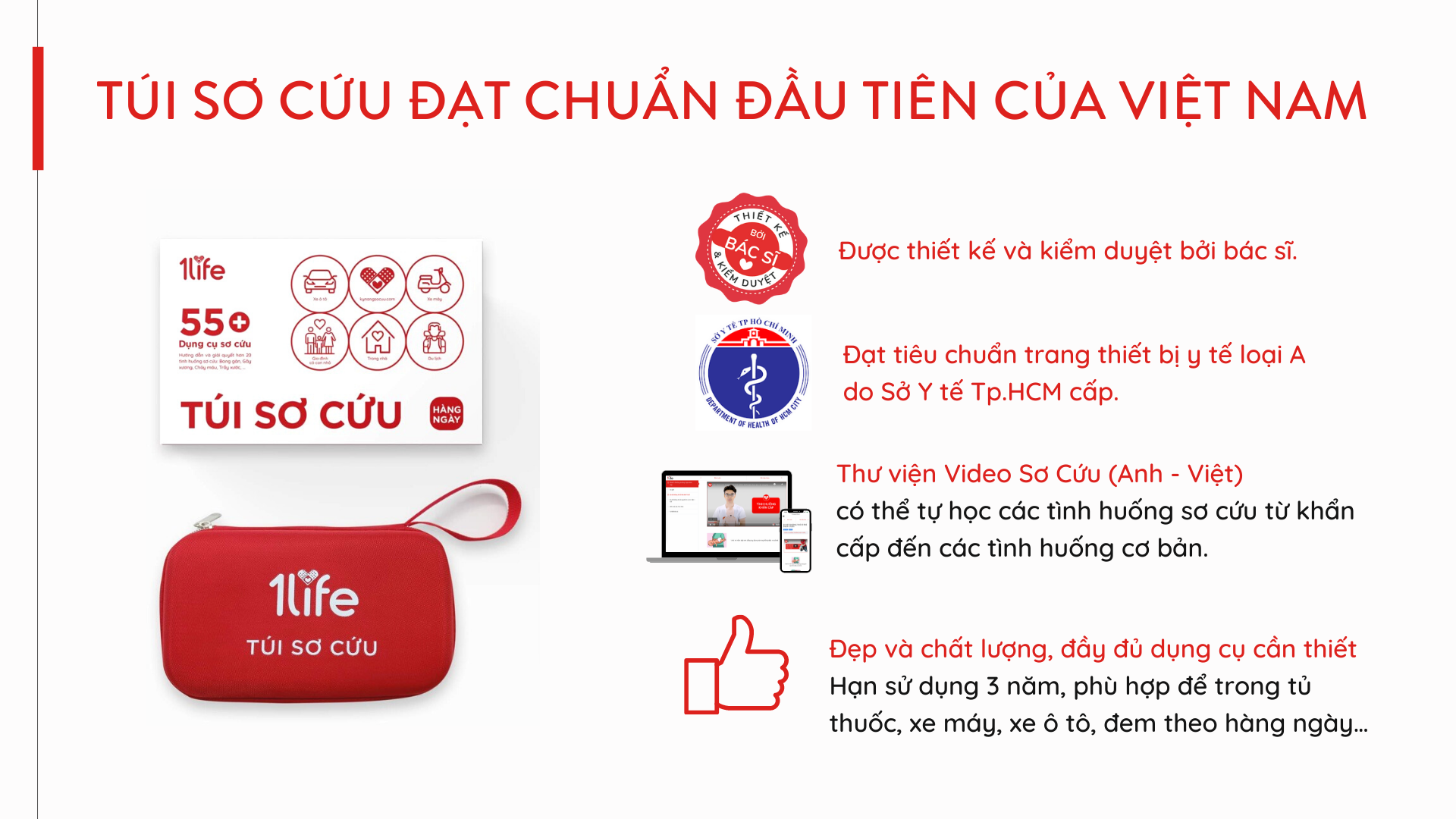 Túi Sơ Cứu - First Aid Kit gồm hớn 55 dụng cụ sơ cứu cơ bản được các bác sĩ thiết kế và kiểm duyệt, đạt tiêu chuẩn trang thiết bị y tế loại A do Sở Y tế Tp.HCM cấp. Túi Sơ Cứu phù hợp cho đem theo trong Xe Máy, Xe Ô Tô, Du lịch, trong nhà và mang theo hàng ngày.