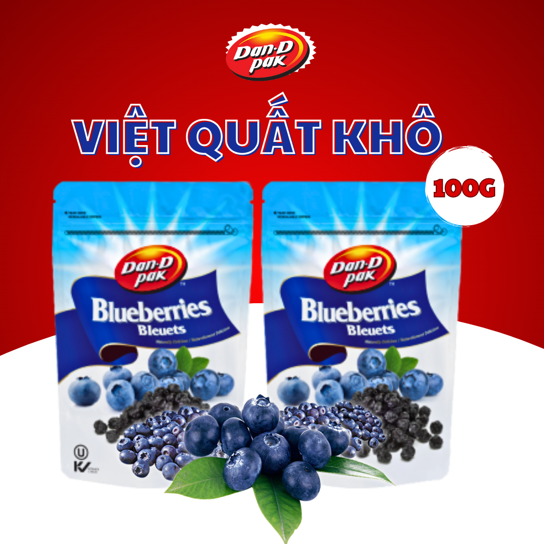 THÔNG TIN SẢN PHẨM TRÁI CÂY SẤY+ Thành phần: việt quất tự nhiên.+ Xuất xứ: Mỹ+ Trọng lượng: 100G, 120G+ HSD: 1 năm kể từ ngày sản xuất+ Đạt các chứng nhận quốc tế như: HACCP, OU KOSHER, BRC LỢI...