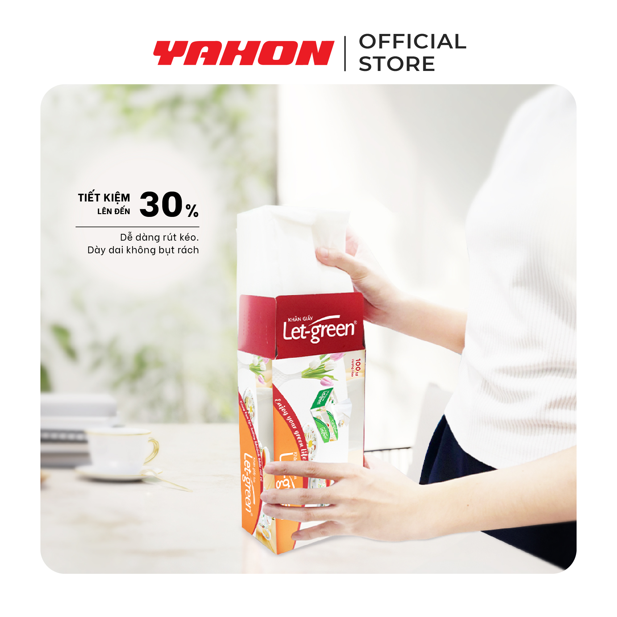 BAO BỔ SUNG KHĂN GIẤY HỘP LET-GREEN 1000 TỜ Khăn giấy hộp Let-green 1000 tờ được sản xuất từ nguyên liệu 100% bột giấy nguyên chất, thân thiện và an toàn với người sử dụng. Thành phần: 100%