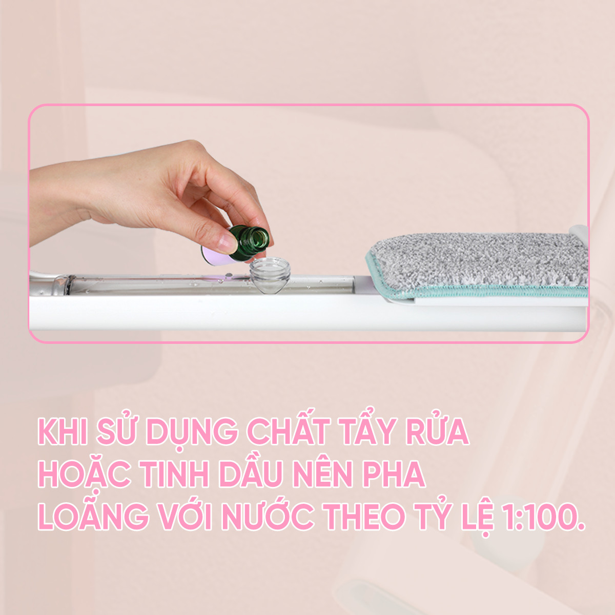 - Thiết kế bình khoang chứa nước thông minh, nằm gọn trong cán lau nhà , không bị vướng khi kéo đẩy thanh gạt