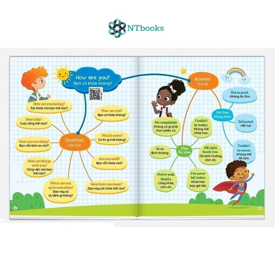 Để giúp cho trẻ có thể học nhanh, nhớ lâu, dễ dàng ôn tập, tự tin giao tiếp. Chúng tôi xin giới thiệu cuốn sách 1001 MẪU CÂU GIAO TIẾP TIẾNG ANH THÔNG DỤNG – THEO SƠ ĐỒ TƯ DUY MIND MAP, với hơn 30 chủ đề thường gặp trong cuộc sống hàng ngày và các mẫu câu giao tiếp thông dụng được trình bày theo dạng Sơ đồ tư duy Mind map rất logic, đơn giản và dễ hiểu.