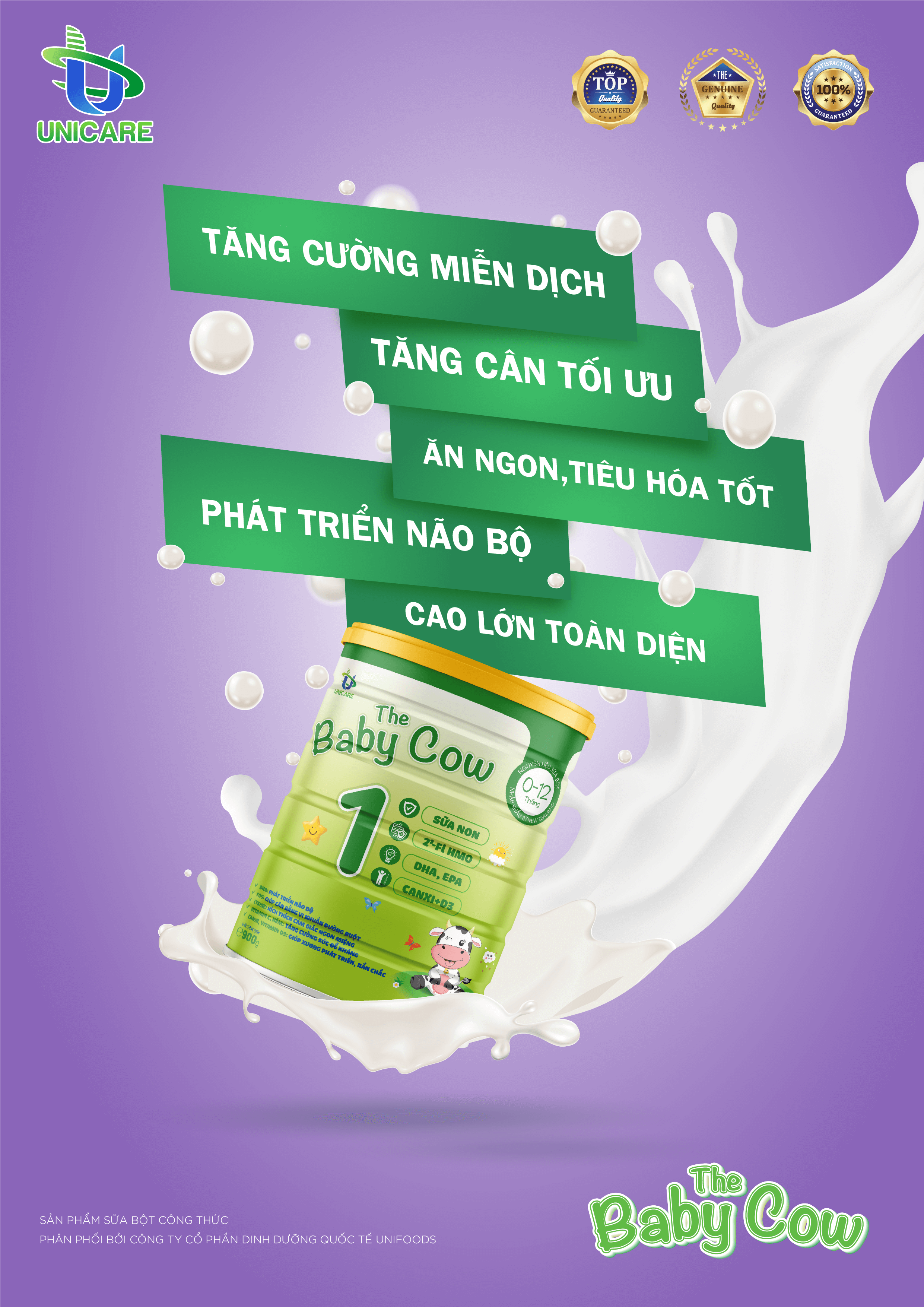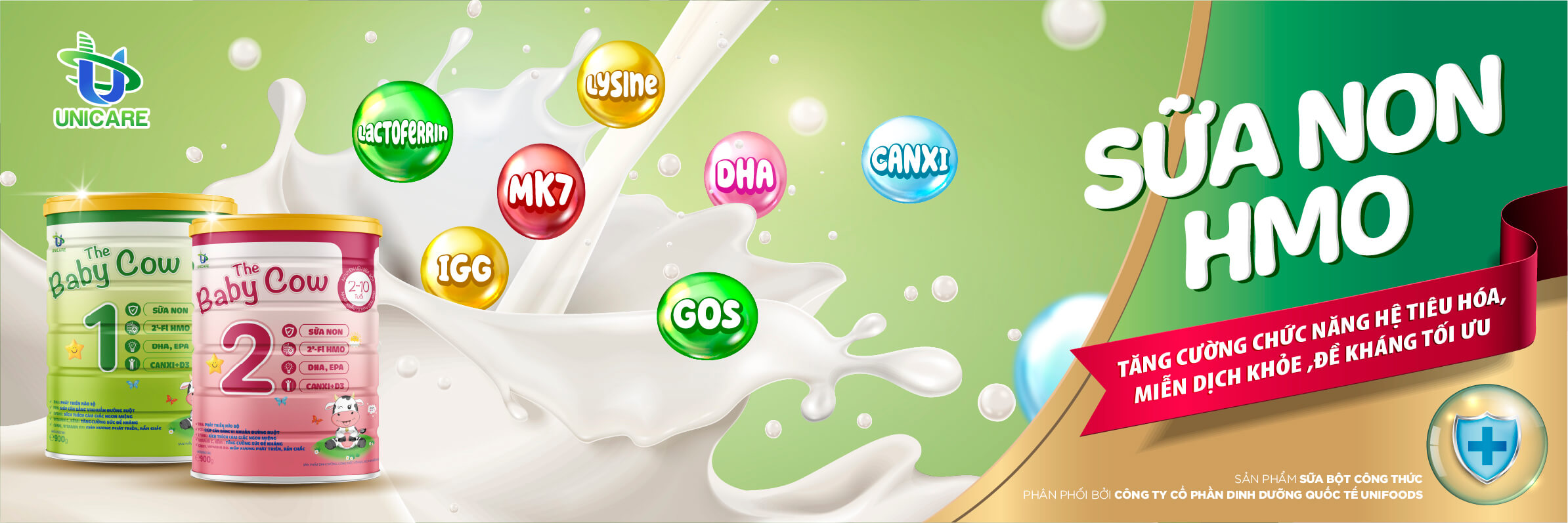 Sữa Non The Baby Cow 1 - đảm bảo tiêu chuẩn lựa chọn dinh dưỡng từ sữa bổ sung Tiêu chí đầu tiên thường được phụ huynh lựa chọn là yếu tố mang đến "nguồn dinh dưỡng tốt lành cho trẻ" và "niềm an tâm cho cha mẹ". The Baby Cow 1 một sản phẩm từ Công ty cổ phần dinh dưỡng quốc tế Unifoods. Sản phẩm được FDA - Cục quản lý Thực phẩm và dược phẩm Hoa Kỳ chứng nhận đủ điều kiện an toàn. Trong Sữa non The Baby Cow có chứa chất gì? Lúc đầu mua về thì cũng thầm nghĩ, thành phần chắc chắn là chứa sữa non rồi, nhưng điều làm mình bất ngờ đó là hàm lượng cực cao luôn, lên đến 1.000.000 mcg - lọt top những sữa non có chứa kháng thể cao nhất, vô cùng yên tâm về tác dụng tăng đề kháng luôn. Sau đó khi nghiên cứu kỹ bảng thành phần, mình thấy càng ưng ý hơn khi sữa chứa các chất như: ● Kháng thể lactoferrin: Một loại kháng thể kỳ diệu có trong sữa mẹ, nhưng chỉ duy trì đến hết 9 tháng đầu đời nếu trẻ bú mẹ hoàn toàn. Kháng thể này tạo hàng rào bảo vệ tự nhiên, giảm mắc các bệnh về đường hô hấp ● Dinh dưỡng 2Fl'HMO: Thành phần dinh dưỡng đứng thứ 3 trong sữa mẹ, tỷ lệ chất này trong The Baby Cow ngang ngửa sữa mẹ bình thường chứ không đơn thuần là sữa công thức nữa. Không chỉ cung cấp năng lượng, HMO còn tăng mức hấp thu dinh dưỡng tại ruột và tăng đề kháng cho con. ● Chất xơ GOS/FOS tỷ lệ vàng 9:1: Chất xơ hòa tan cải thiện tốt các vấn đề tiêu hóa của con như táo bón, đầy bụng, ăn không tiêu. Tỷ lệ 9:1 đã được tính toán để phù hợp, đảm bảo cải thiện việc ăn uống. ● Chiết xuất EPA - DHA từ tảo biển: Có nguồn gốc từ tự nhiên nên cực kỳ an toàn với trẻ nhỏ, giúp mắt sáng và trí não thêm thông minh. ● Bộ ba Canxi - Vitamin D3 - MK7: Đây được ví như những chất kết nối xây lên hệ xương vững chắc và phát triển chiều cao cho con. Nếu thiếu đi vitamin D3 và MK7 thì cơ thể gần như không thể hấp thụ Canxi Công dụng nổi trội của sữa non The Baby Cow: -Chắc hẳn nghiên cứu xong những thành phần phía trên, các mẹ cũng đoán được những tác dụng nổi trội của sữa The Baby Cow rồi đúng không? Để mình liệt kê lại cho mẹ tiện theo dõi nhé: ● Cung cấp năng lượng phù hợp với lứa tuổi trẻ dưới 1 tuổi, đặc biệt phù hợp thay thế sữa mẹ ở những mẹ ít sữa ● Củng cố thêm hệ miễn dịch đầu đời vốn dĩ rất mong manh ở trẻ, giảm đi nguy cơ mắc các bệnh nguy hiểm ● Giải quyết các vấn đề đường ruột hay gặp như táo bón, đầy hơi, nôn trớ… ● Cho cơ thể bé khỏe mạnh từ bên trong từ trí não đến vận động, tăng trưởng cả cân nặng lẫn chiều cao Nhất là các bé đang trong tình trạng lười ăn, ăn hoài không tăng cân, thấp bé nhẹ cân… thì mẹ cho bé sử dụng càng sớm càng tốt nha.