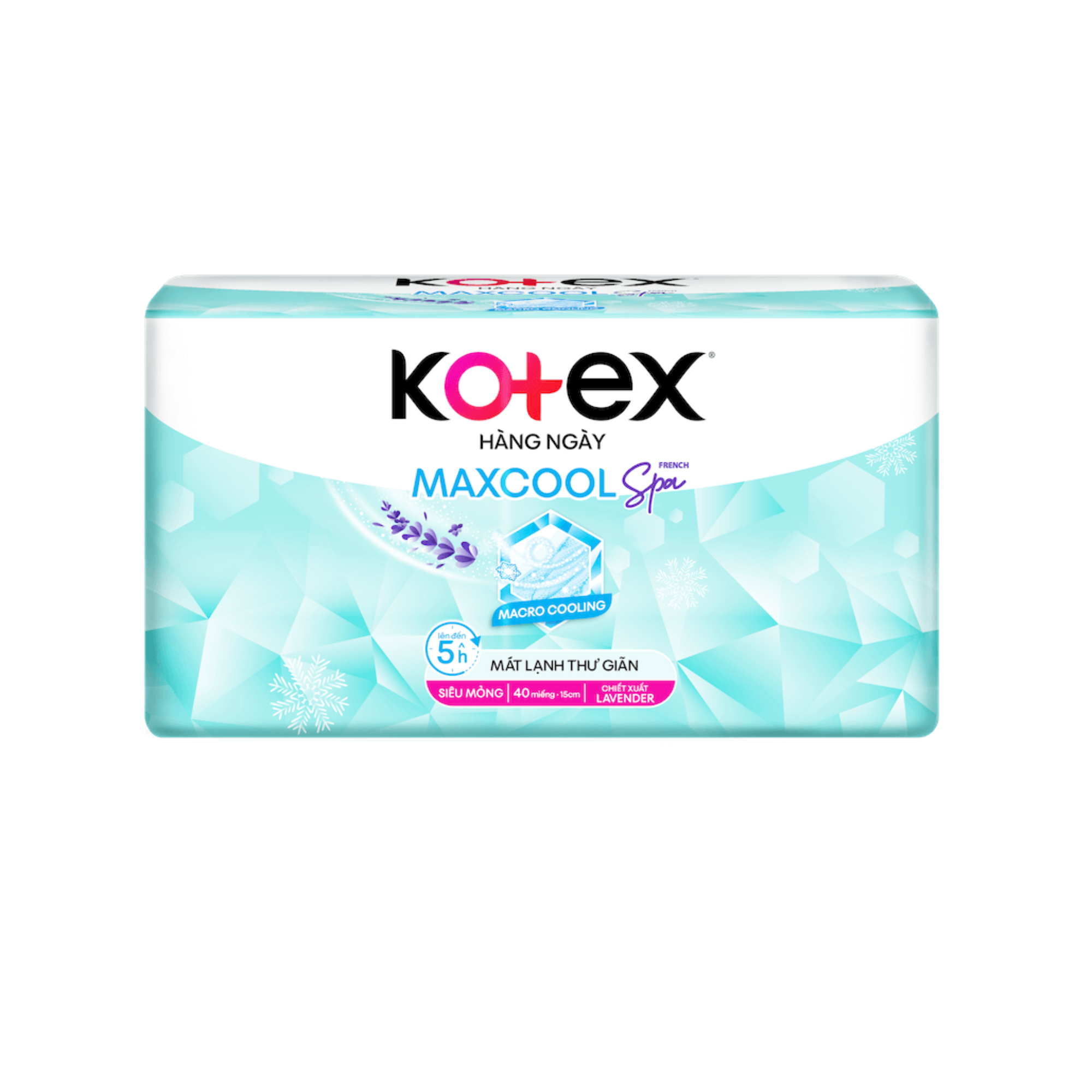 Mua tại TiktokỞ giai đoạn tuổi dậy thì, ngoài vấn đề chu kỳ kinh nguyệt, bạn gái còn hay gặp tình trạng ra khí hư (hay còn gọi là huyết trắng) làm ẩm ướt quần lót, tạo điều kiện cho vi khuẩn và mùi hôi xuất hiện. Hơn nữa, vào ngày đèn đỏ, nhiều bạn gái còn gặp tình trạng hầm bí, khó chịu ở vùng nhạy cảm, ảnh hưởng đến tâm trạng cả ngày dài. Kotex Hàng Ngày Max Cool French Spa 40 miếng - Mát lạnh êm nhẹ hương Lavender Kotex được thành lập năm 1920, là thương hiệu thuộc công ty hàng tiêu dùng Kimberly-Clark có trụ sở tại Mỹ, chuyên cung cấp các sản phẩm chăm sóc sức khỏe kinh nguyệt phụ nữ. Hiện nay, Kotex cung cấp đa dạng các dòng băng vệ sinh ban ngày, băng vệ sinh ban đêm và băng vệ sinh hàng ngày. Một trong những dòng băng vệ sinh hàng ngày tiện dụng, hỗ trợ bảo vệ sức khỏe cho bạn gái không chỉ trong ngày đèn đỏ mà còn vào những ngày bình thường khác chính là dòng sản phẩm băng vệ sinh Kotex Hàng Ngày Max Cool French Spa 40 miếng. Với thiết kế nhỏ gọn, siêu mỏng kèm công nghệ Macro Cooling siêu mát lên đến 5h cùng hương Lavender tươi mát, Kotex Hàng Ngày Max Cool French Spa 40 miếng sẽ giúp vùng da nhạy cảm của bạn gái được khô thoáng, dịu mát, an toàn và sạch sẽ cả ngày dài. Ưu điểm của dòng sản phẩm Kotex Hàng Ngày Max Cool French Spa 40 miếng kháng khuẩn siêu bảo vệ Ưu điểm mới của dòng sản phẩm Kotex Hàng Ngày Max Cool French Spa 40 miếng có gì đặc biệt? So với dòng sản phẩm Kotex Max Cool bán chạy trước đó, phiên bản Kotex Hàng Ngày Max Cool French Spa sở hữu những đặc điểm nổi bật cực xịn sò như: