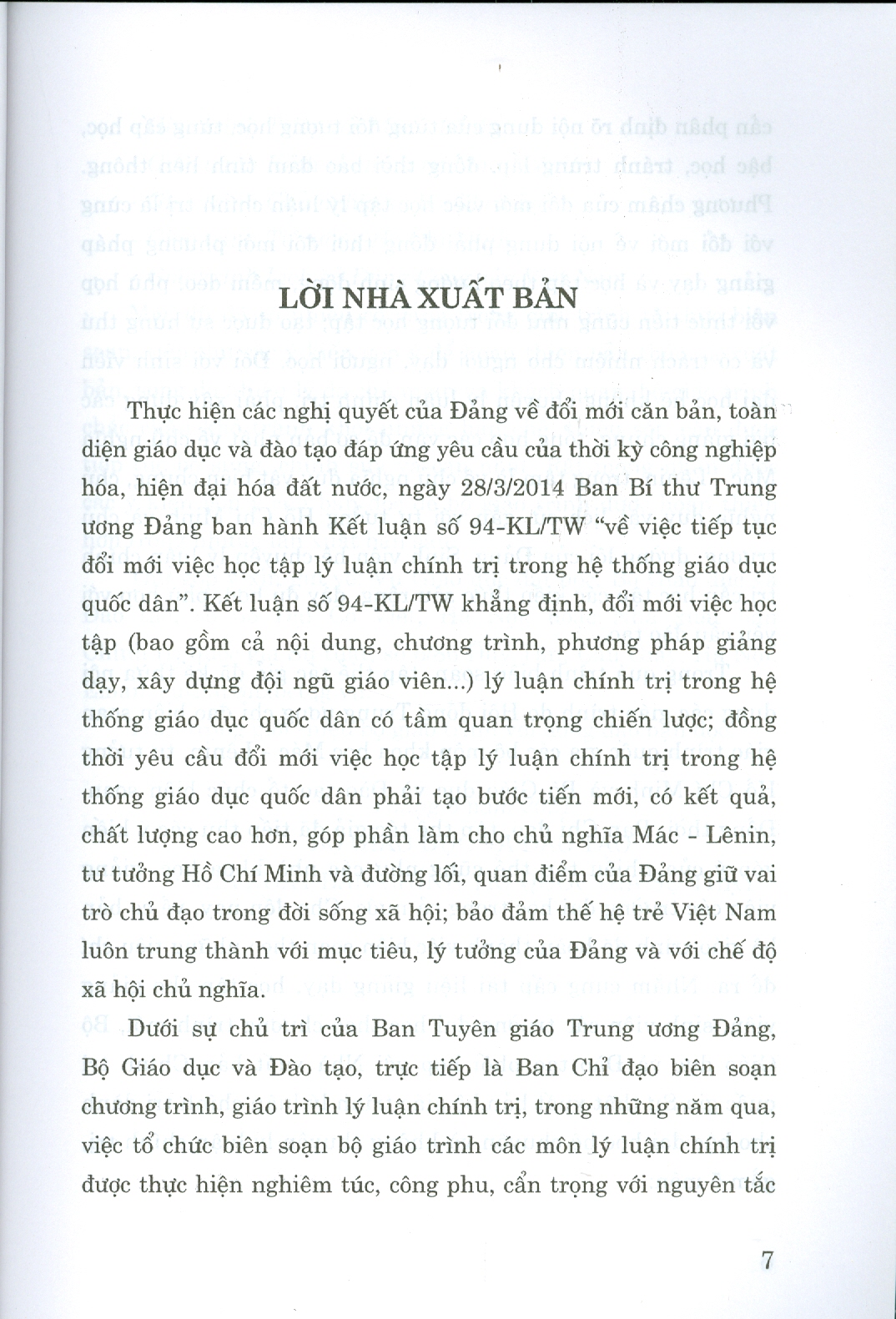 Bộ giáo trình lý luận chính trị gồm 5 cuốn dành cho bậc đại học hệ không chuyên lý luận chính trị.