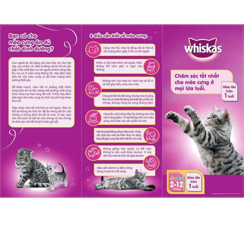Đồ Ăn khô Whiskas dành cho mèo được phát triển bởi các chất dinh dưỡng tối ưu và được các chuyên gia vật nuôi trên khắp thế giới công nhận là sản phẩm dinh dưỡng tốt nhất và khuyên dùng.