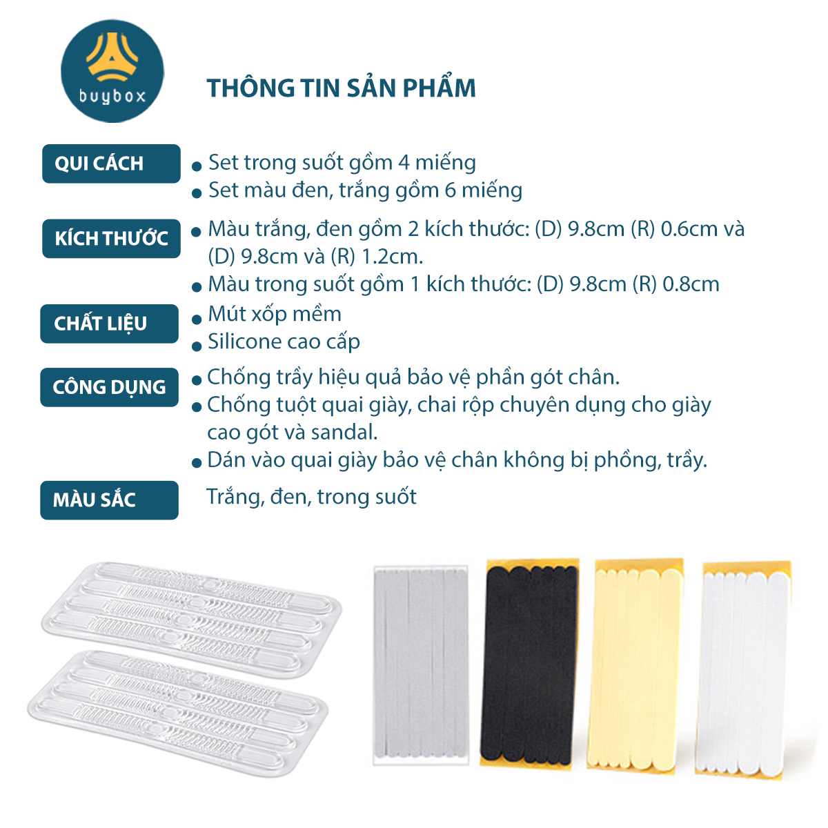 CÔNG DỤNG NỔI BẬC - Lót giày đa năng chống rộng buybox là sự kết hợp giữa lót giày và lót chống trầy gót chân. - Giúp chống rộng