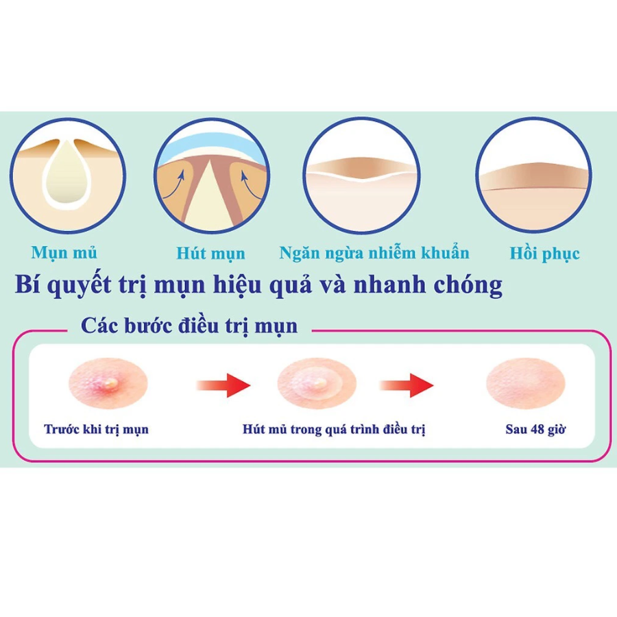 - Mở túi nhựa, lấy 1 miếng dán và đặt lên vị trí chính giữa mụn trứng cá, nhẹ nhàng ấn 3-5 giây để miếng dán dính vào da.